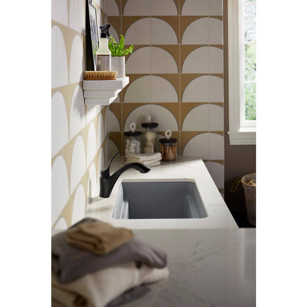 The KOHLER Cairn Undermount Utility Sink in matte grey is crafted from Neoroc composite, offering a stylish and durable solution for both kitchen and laundry settings. Known for its superior resilience to scratches, stains, and heat, this sink enhances any space with its transitional design while providing a generous 12-inch depth for versatile uses.
