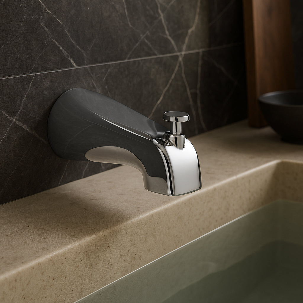 A: With its minimalist and classic design, the spout complements various bathroom styles including modern, transitional, and coastal.