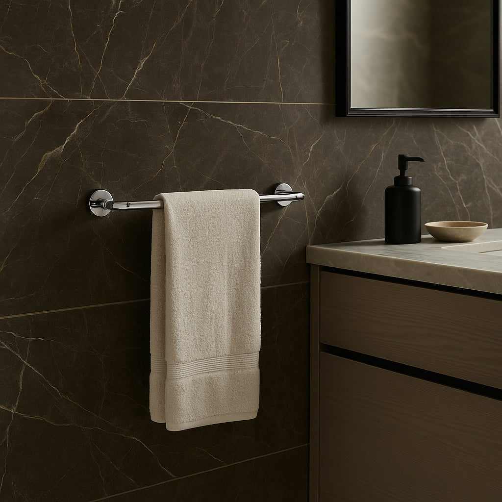 A: The towel bar includes an installation template and tools, making it straightforward to install on most walls. Simply follow the provided instructions for a secure fit.