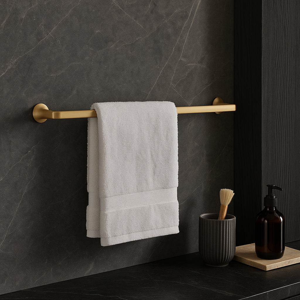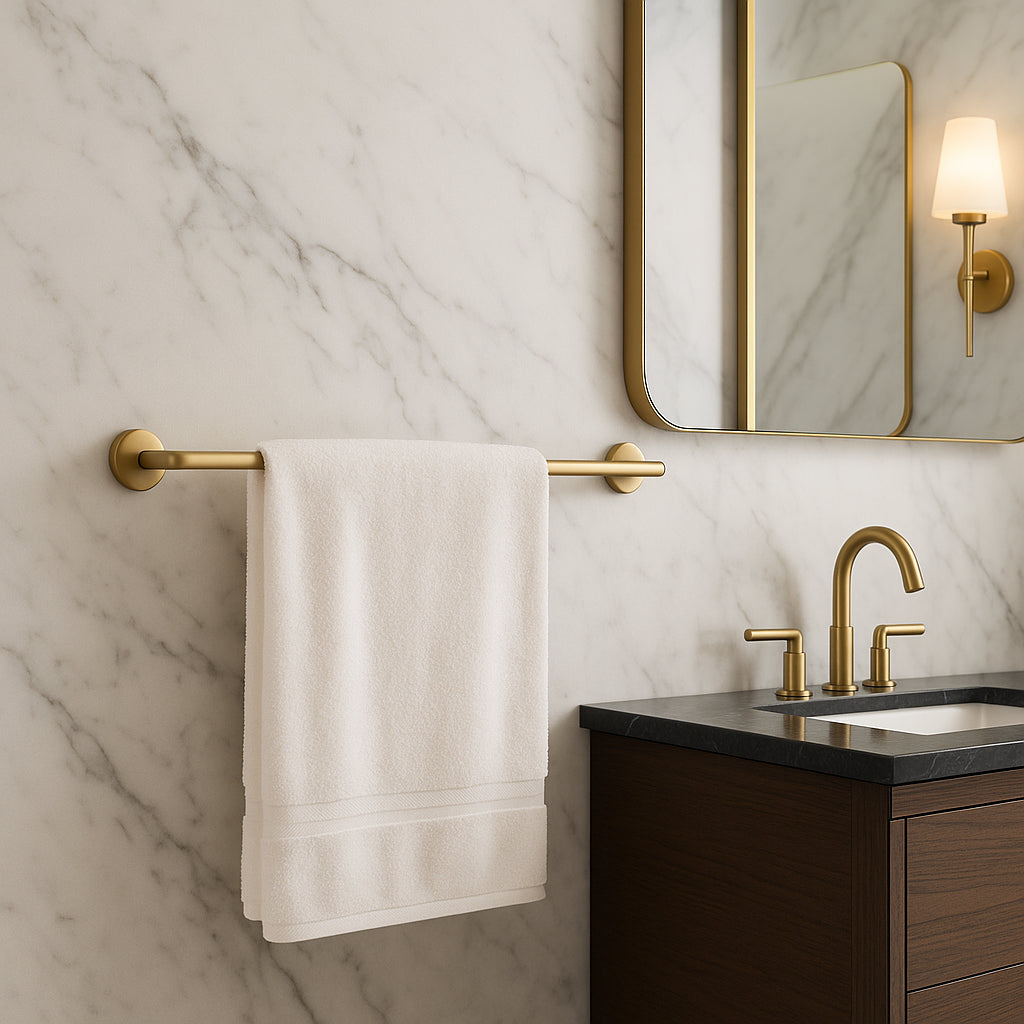 The KOHLER Cursiva 24" Towel Bar combines modern design with durable construction. Its brushed moderne brass finish resists corrosion and tarnishing, making it a stylish and reliable addition to any bathroom.