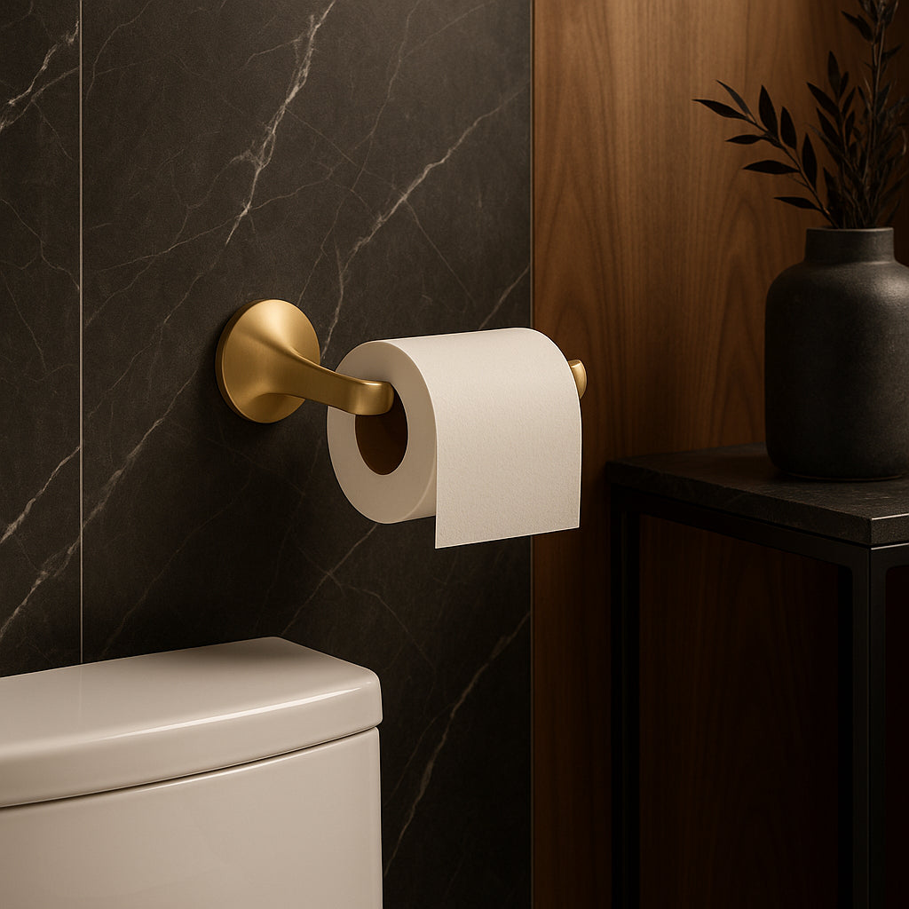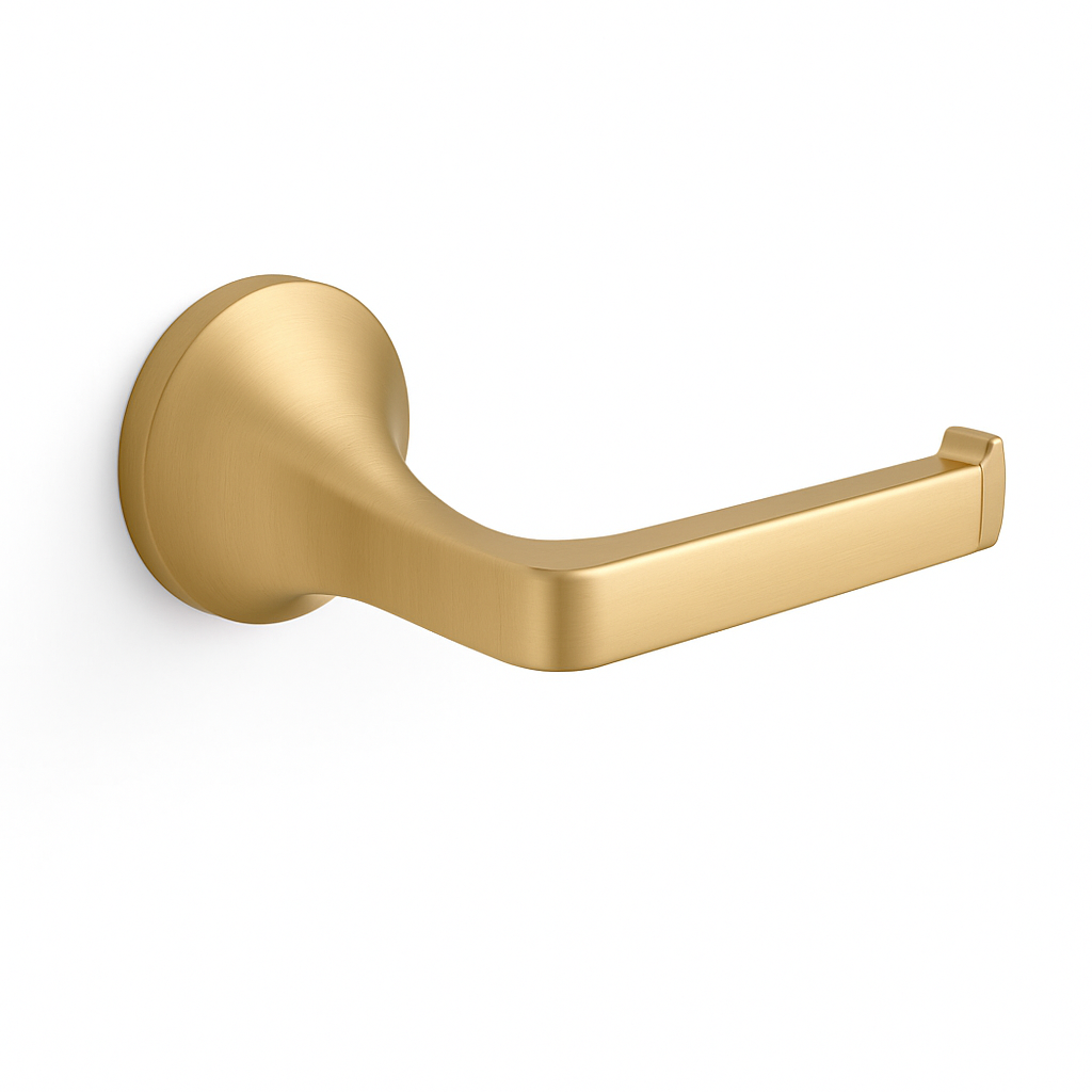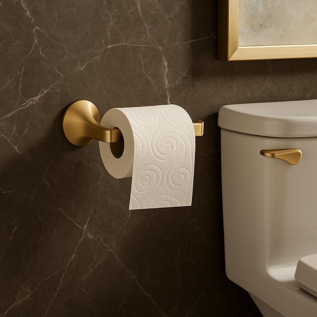 The KOHLER Cursiva Wall-Mount Toilet Paper Holder combines modern design with durable construction. Its brushed brass finish resists tarnishing, and it coordinates seamlessly with the Cursiva collection.