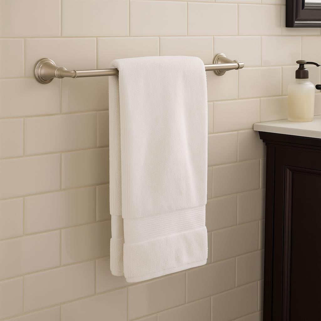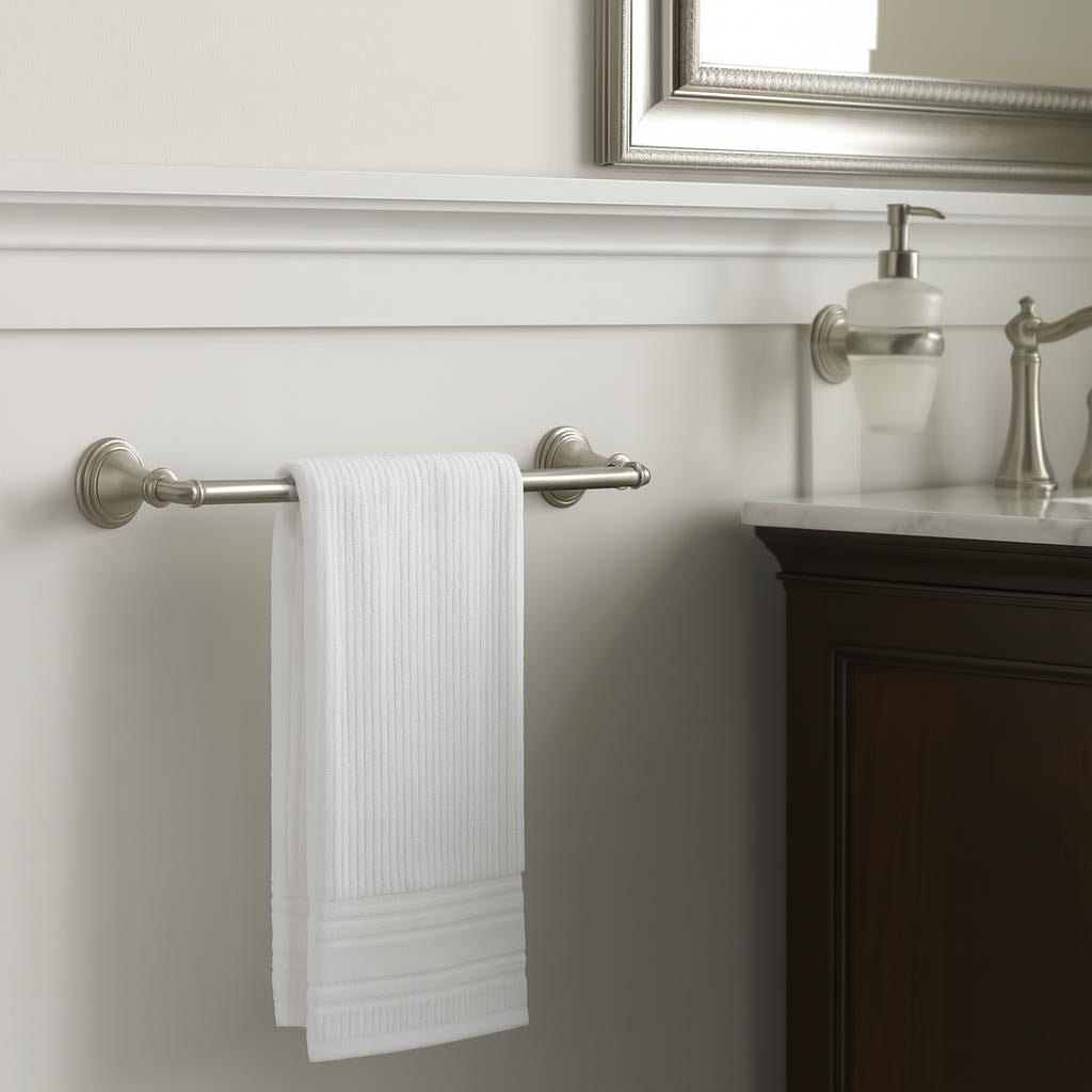 The KOHLER Devonshire Towel Bar is a masterpiece of design, blending classic curves with a modern brushed nickel finish. Its sophisticated aesthetic transforms any bathroom into a luxurious retreat. Pair it with plush towels in neutral tones to accentuate its timeless charm. This towel bar is not just a fixture; it's a statement of refined taste and enduring quality.