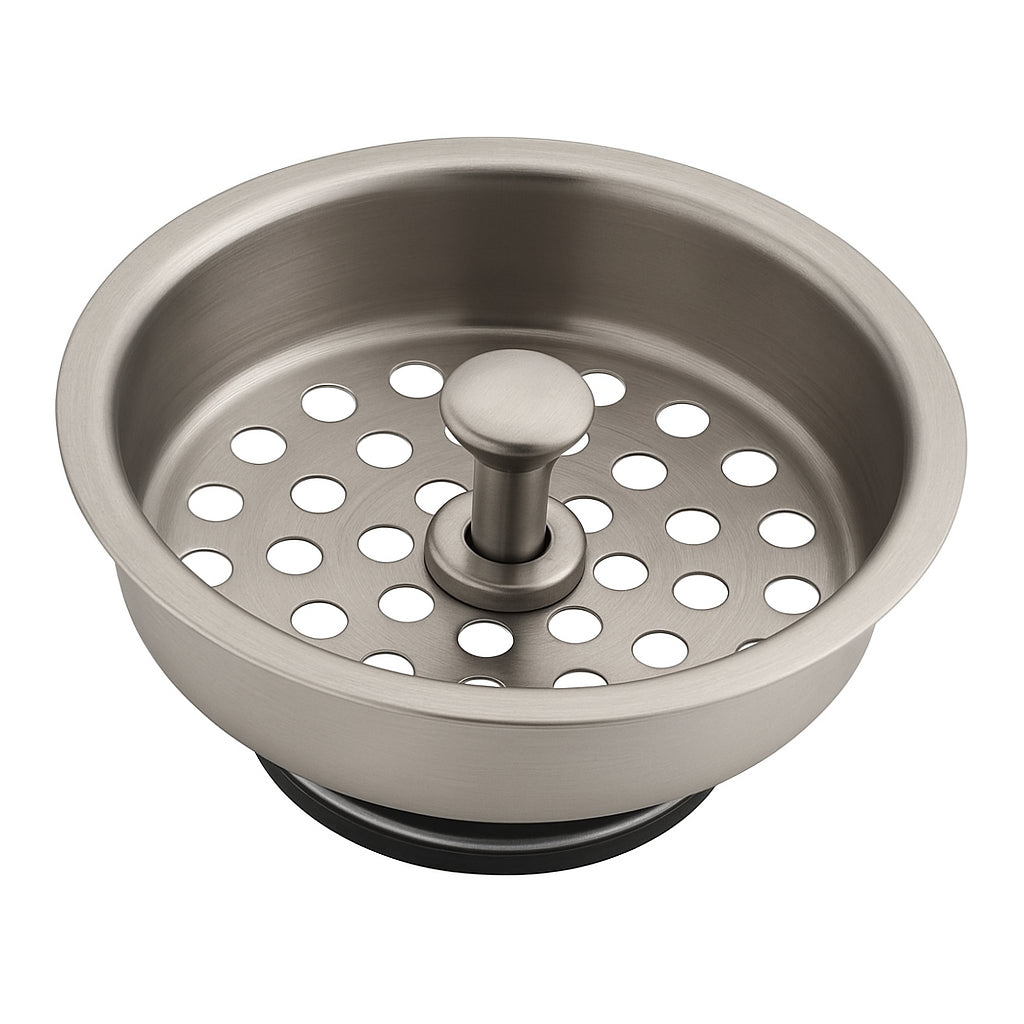The KOHLER Duostrainer Basket Strainer combines durability and style with its stainless steel and brass construction. Designed for standard sink outlets, it offers a secure seal and corrosion resistance, making it a reliable choice for any kitchen.