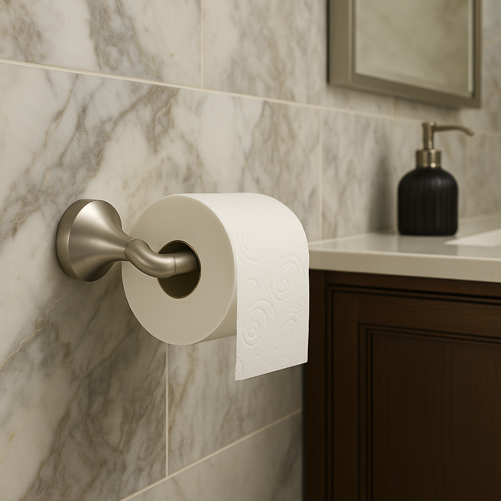 A: While the design is standard and supports typical roll sizes, it may not accommodate oversized toilet paper rolls.