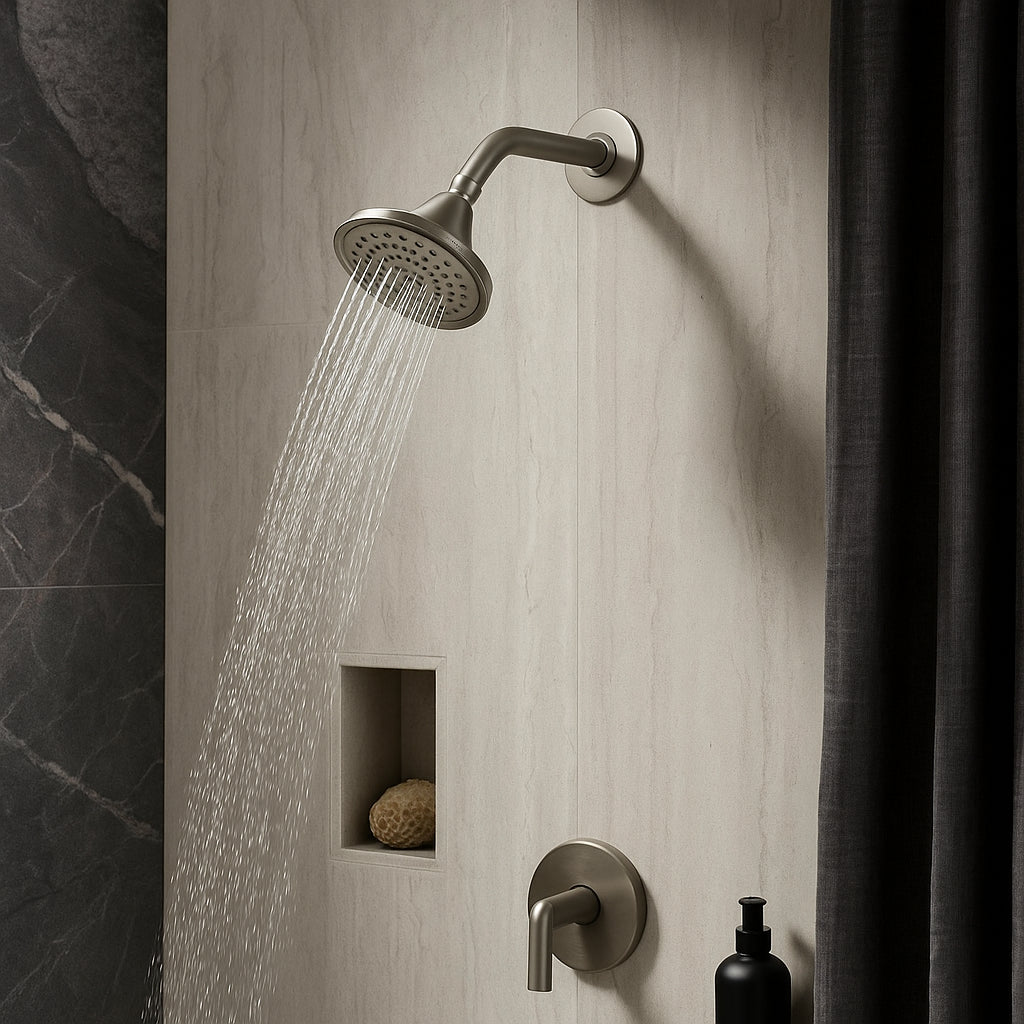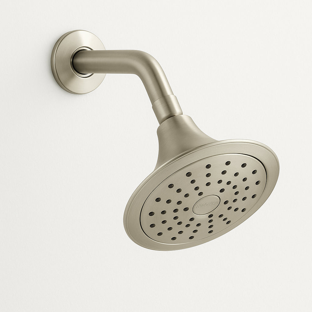 The KOHLER Forte Shower Head combines timeless style with modern functionality, featuring a brushed nickel finish and a full spray pattern for a luxurious shower experience. Its durable design ensures consistent performance and easy maintenance.