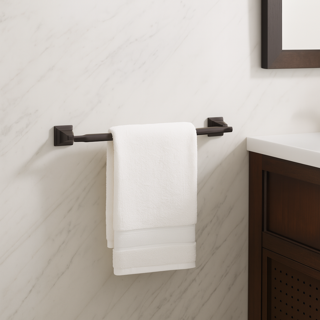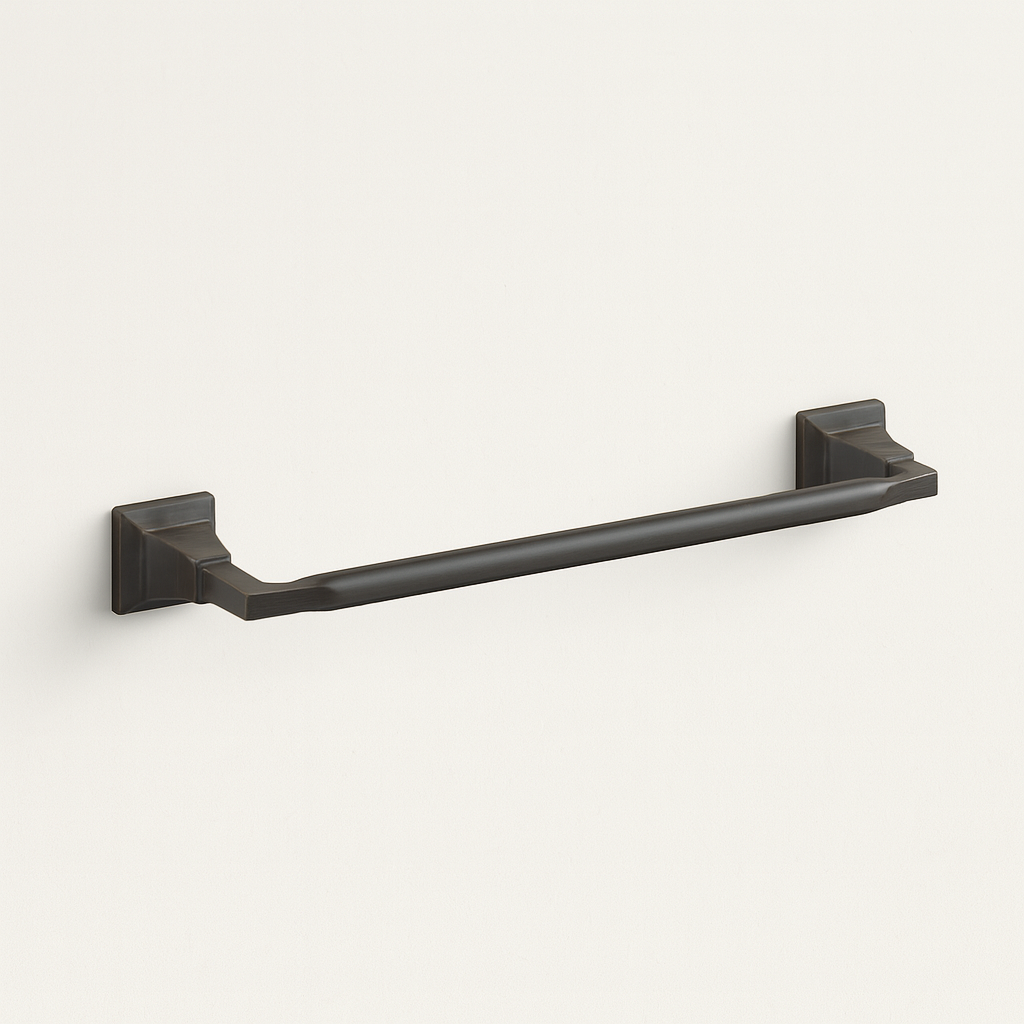 The KOHLER Kallan 18-inch Towel Bar combines modern and traditional design elements with a durable oil-rubbed bronze finish. Made from premium metal, it resists rust and tarnish, ensuring long-lasting elegance and functionality.