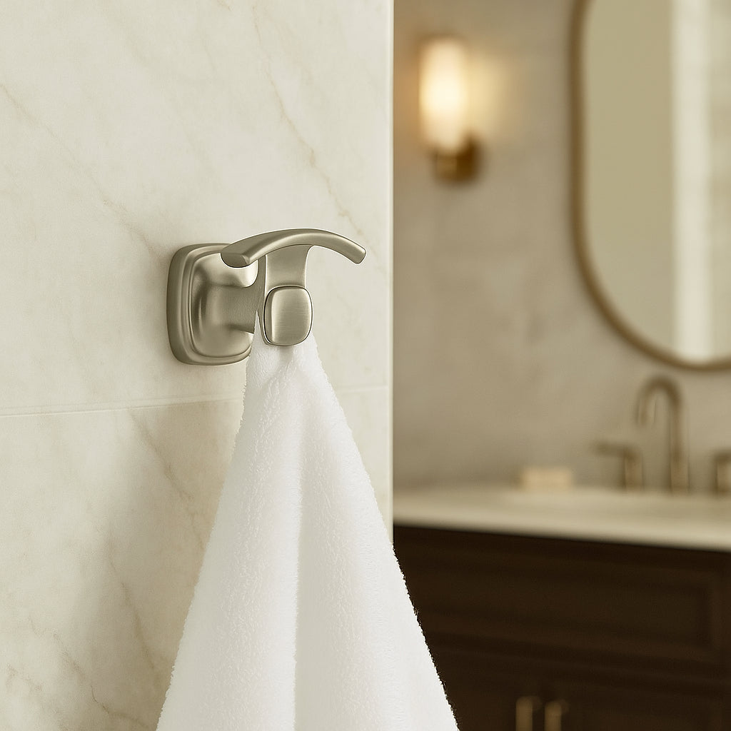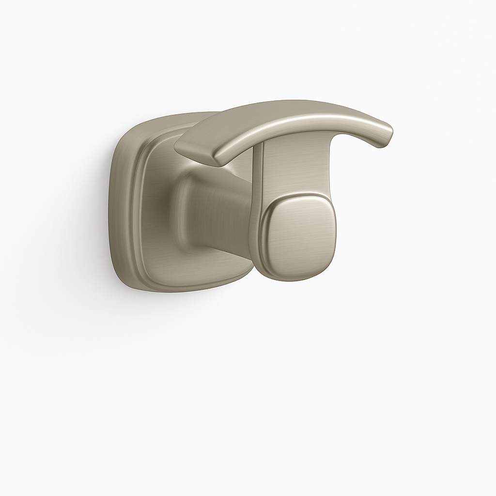 The KOHLER Numista Robe Hook in Vibrant Brushed Nickel combines industrial modern design with functional elegance. Made from premium metal, it resists corrosion and tarnishing, ensuring durability and style for your bathroom.