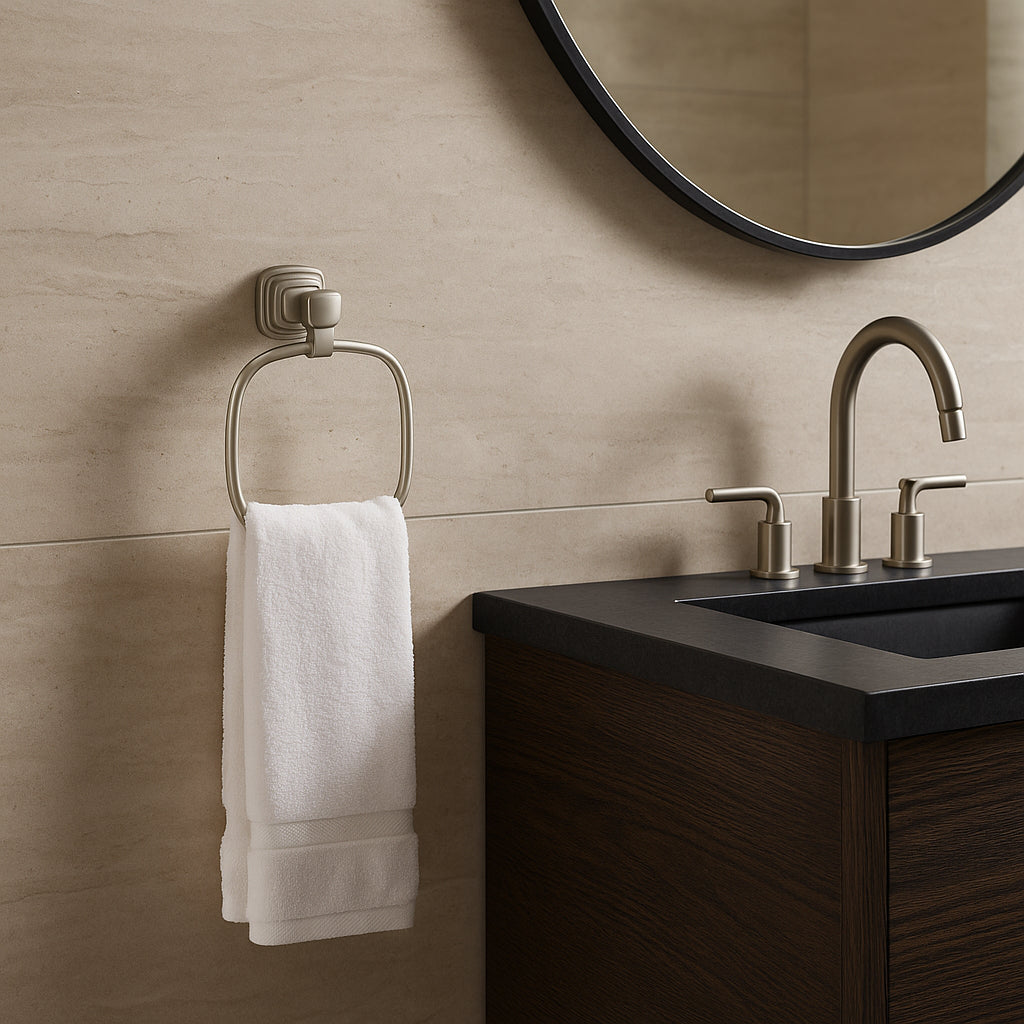 Upgrade your bathroom with the KOHLER Numista Towel Ring – where industrial design meets effortless elegance.
