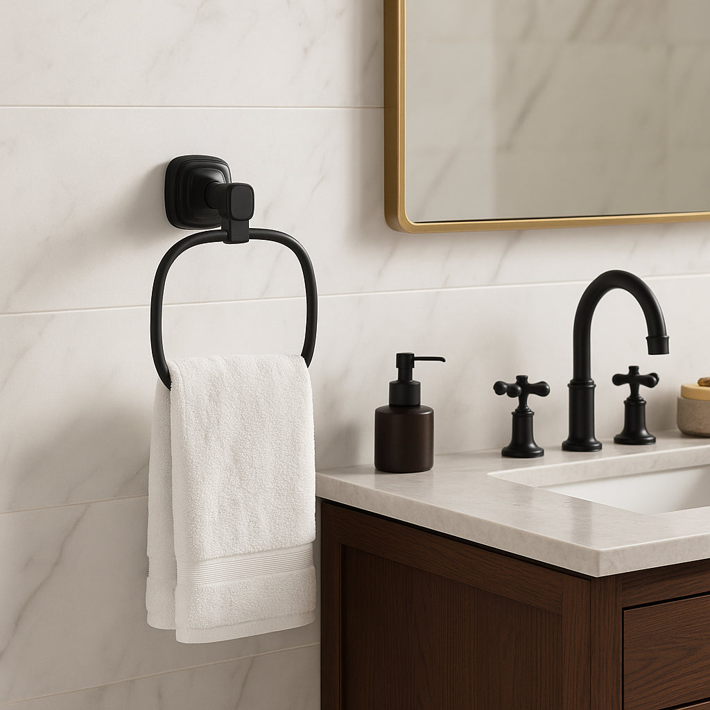 A: The towel ring comes with installation hardware and a template. Simply attach the mounting bracket to the wall, and secure the towel ring onto it. No special tools are required.