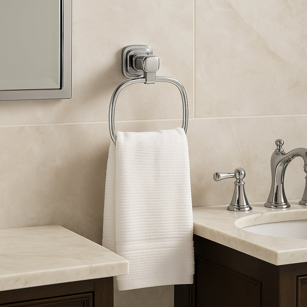The KOHLER Numista Towel Ring in Polished Chrome combines sleek design with durable metal construction, offering a stylish and functional addition to any bathroom. Its corrosion-resistant finish ensures long-lasting beauty and reliability.