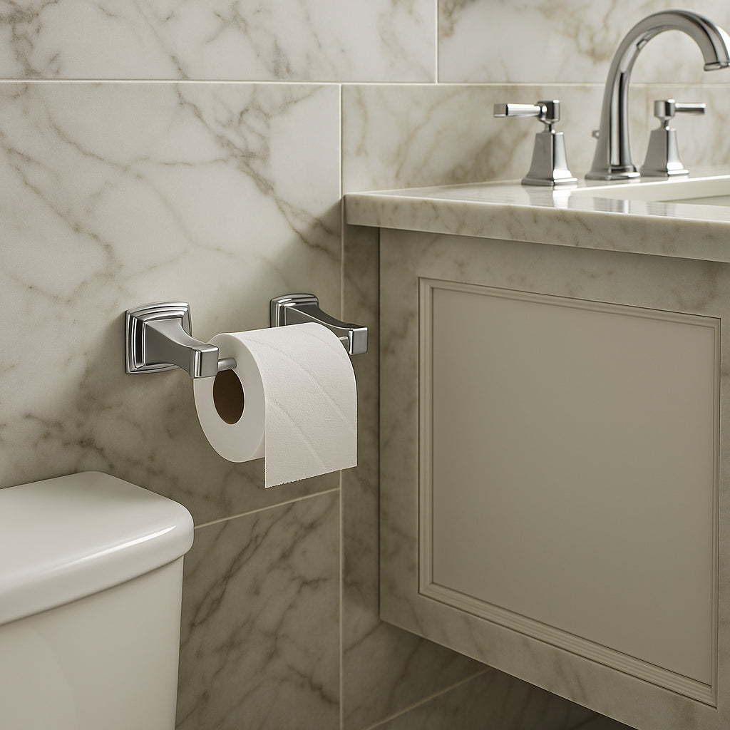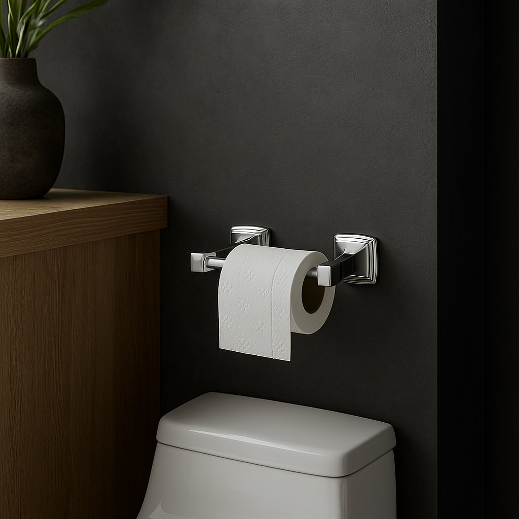 The KOHLER Riff Pivoting Toilet Paper Holder combines timeless design with modern convenience. Its polished chrome finish and pivoting arm make it a durable and stylish addition to any bathroom.
