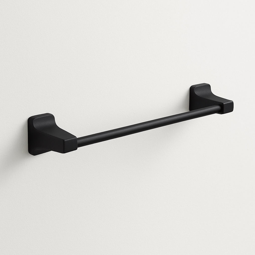Transform your bathroom into a sanctuary of style with the KOHLER Rubicon Towel Bar. Its sleek matte black finish and artful silhouette add modern sophistication to any decor. Pair it with brushed nickel or chromatic accents for a captivating aesthetic. This towel bar is more than functional—it's a statement piece for luxurious living.