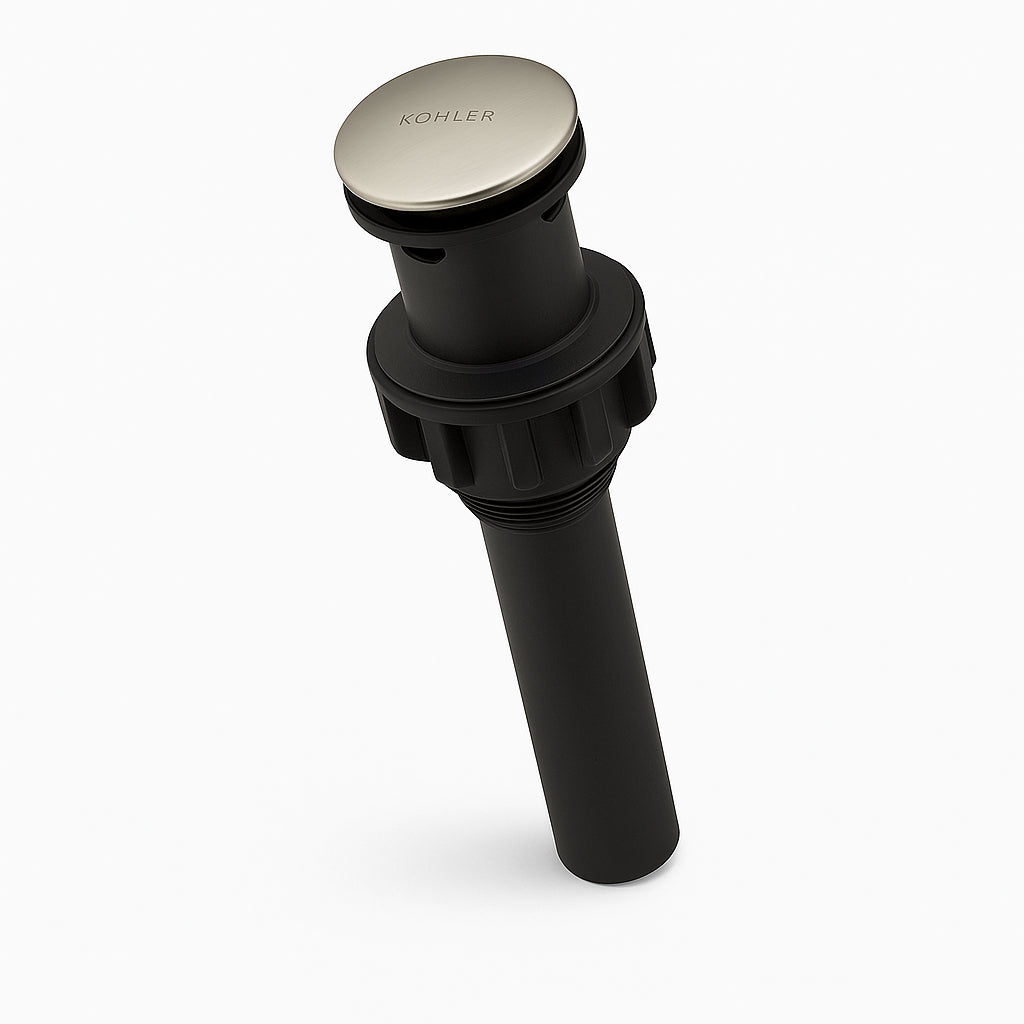 Transform your sink into a centerpiece with the Kohler Clicker Drain. Its sleek brushed nickel finish and universal design make it a perfect addition to any modern bathroom or kitchen. Pair it with a minimalist basin for a clean, contemporary look. This drain is not just functional but a statement of style and sophistication.