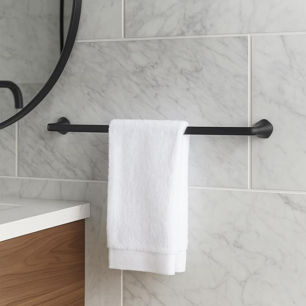 Customers appreciate the KOHLER Sundae Towel Bar for its elegant design and durable construction. Many highlight the matte black finish as a standout feature that resists corrosion and tarnishing. Installation is frequently praised for being straightforward, with included hardware simplifying the process. Some customers note that the bar's weight capacity is ideal for holding multiple towels without sagging. Overall, the product is well-received for its combination of style and functionality.