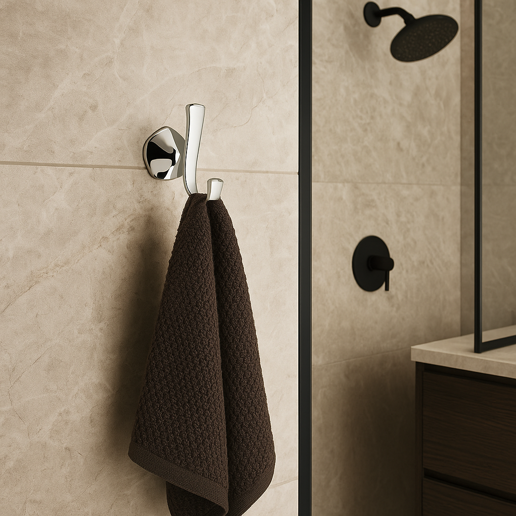 A: This hook is part of the Sundae collection but its classic look fits well with other KOHLER products.