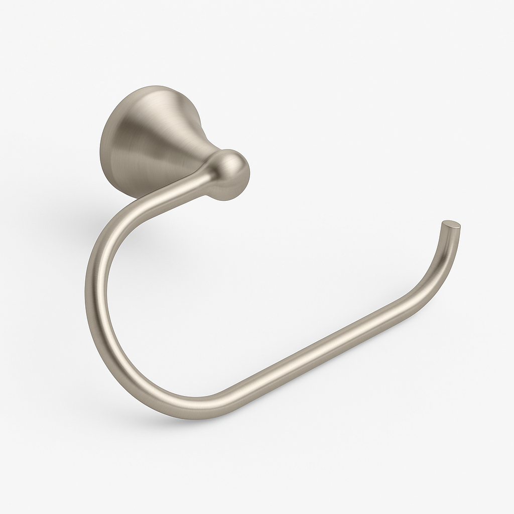 The KOHLER Tone Towel Ring in Vibrant Brushed Nickel combines modern aesthetics with durable functionality. Its midcentury modern design adds a touch of elegance to any bathroom, while the resilient KOHLER finish keeps it looking new by resisting corrosion and tarnishing.