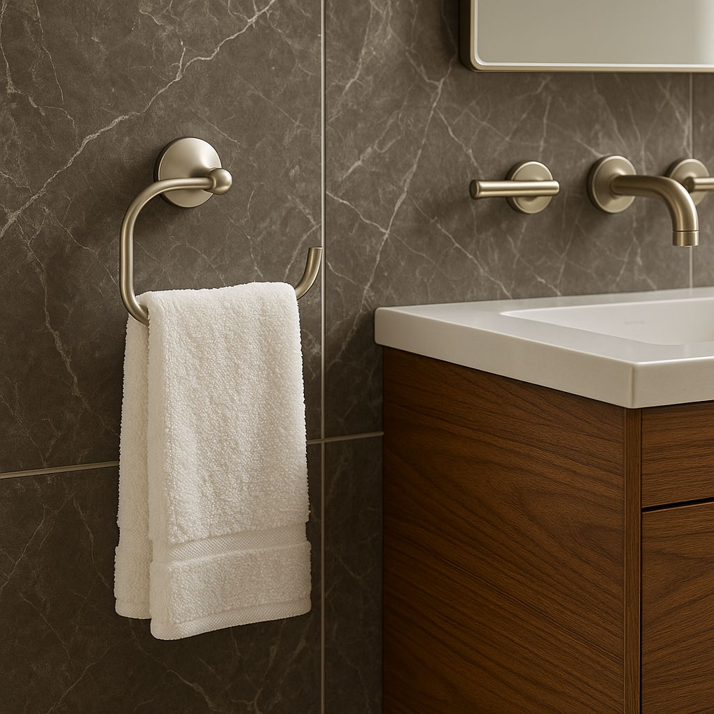 A: Absolutely. The towel ring coordinates with other products in the Tone collection, including faucets and accessories.