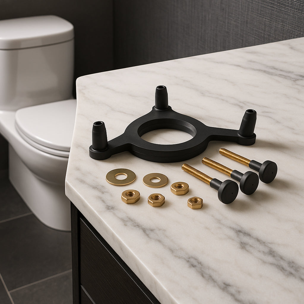 A: The gasket comes with brass hardware for easy installation. Drain and remove the toilet tank, install the gasket on the base ensuring it's centered, and bolt the tank back to the bowl using the included hardware.