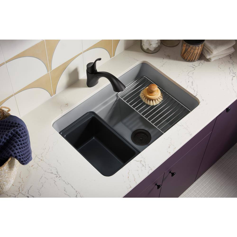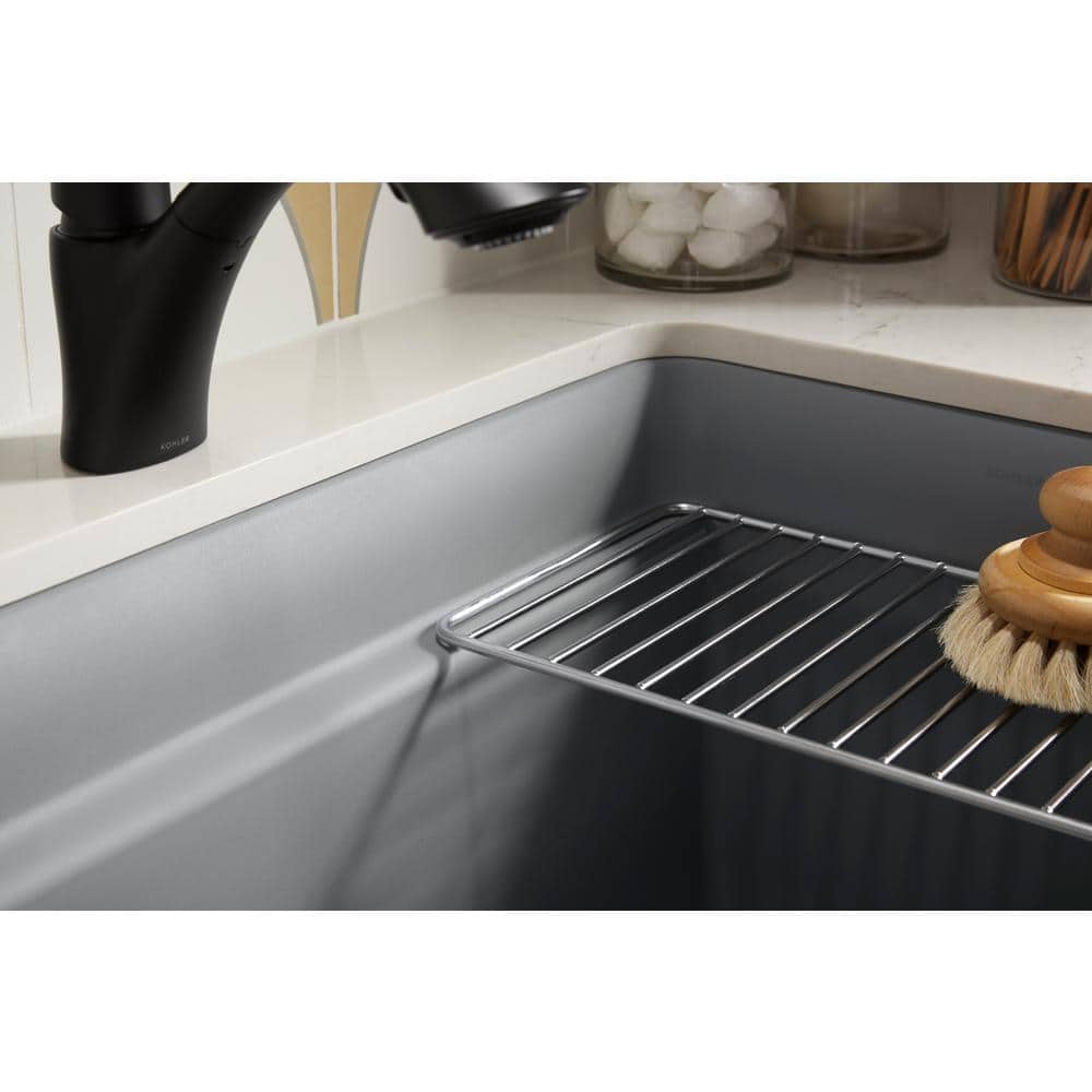 The KOHLER Stainless Steel Utility Rack is a perfect companion for your Cairn wash bin. Its durable construction facilitates versatile use - whether as a drying surface or a dishwasher-safe thawing rack, making it an essential accessory for any utility sink.