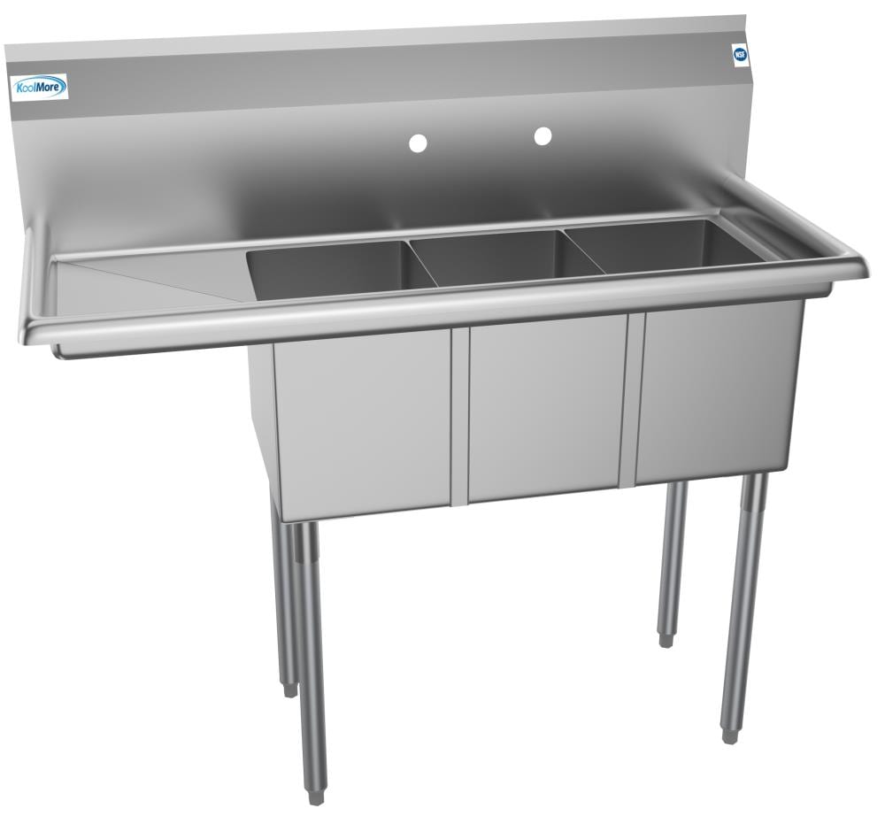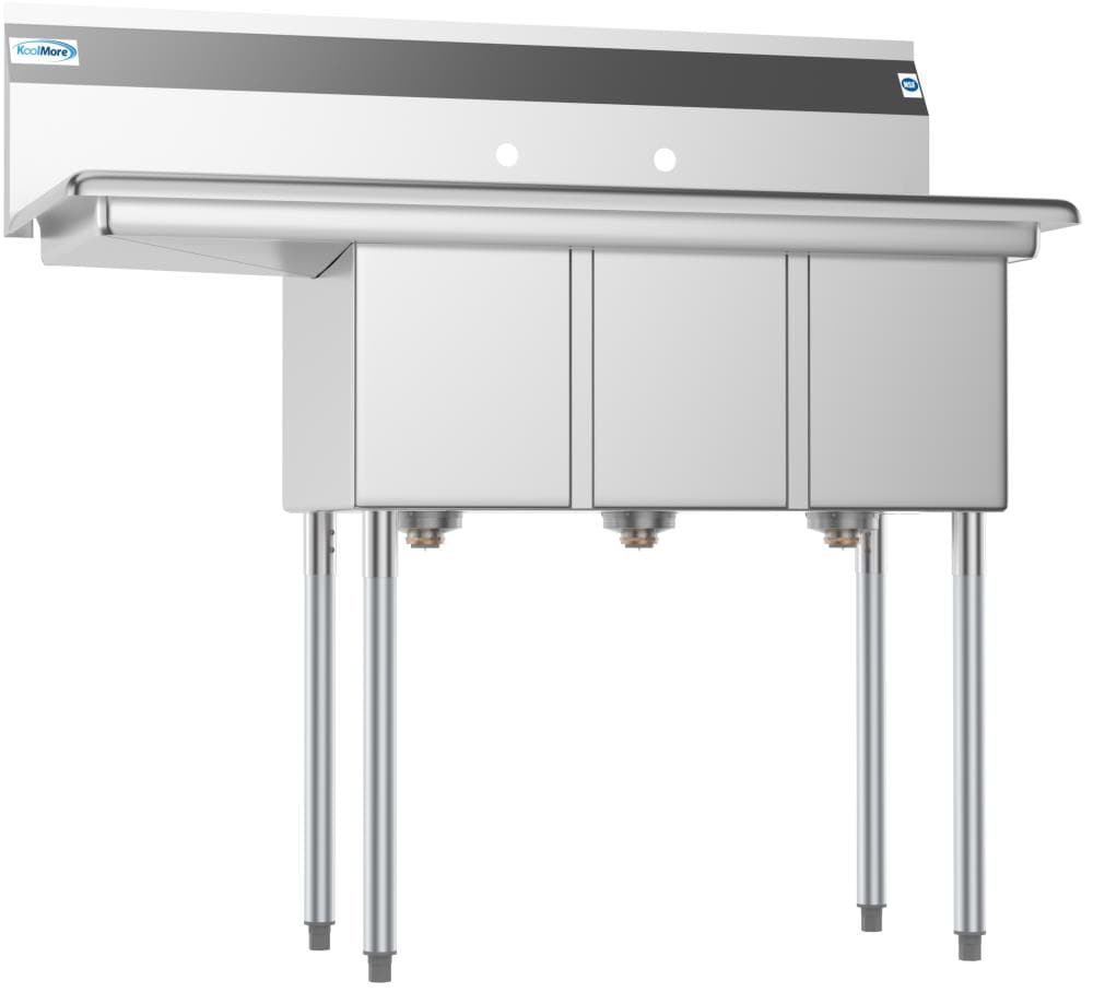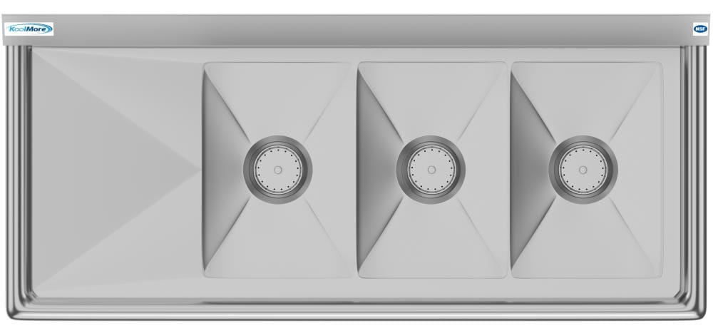 The KoolMore 3-Basin Stainless Steel Utility Tub is perfect for busy commercial and professional environments where heavy-duty, reliable washing is needed. Crafted from corrosion-resistant 304 stainless steel, this three-basin sink provides ample space for efficient washing, rinsing, and sanitizing, while the integrated drainboard and easy-clean corners enhance convenience and hygiene.