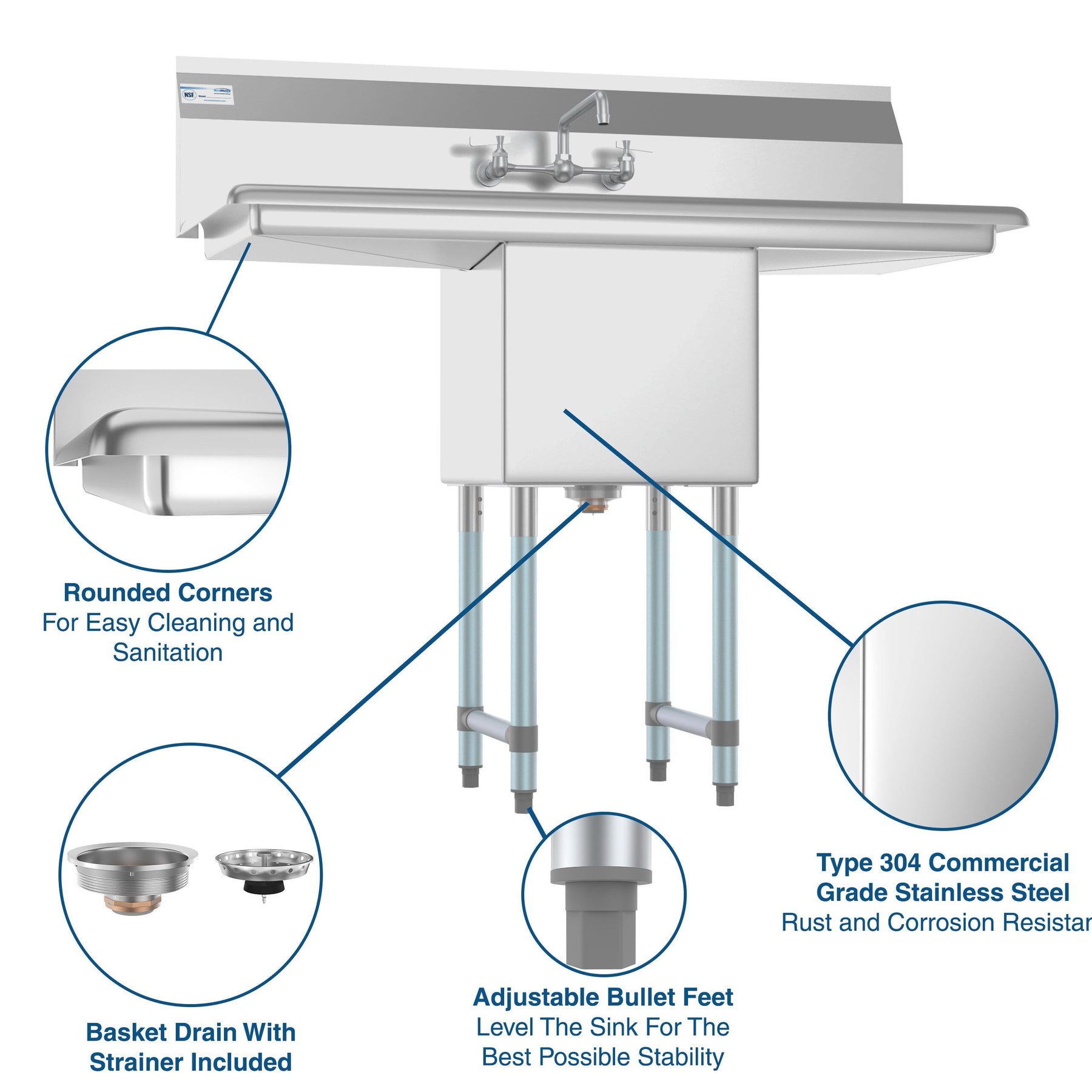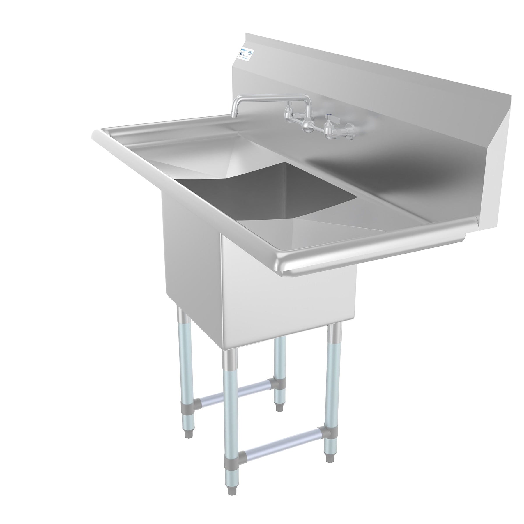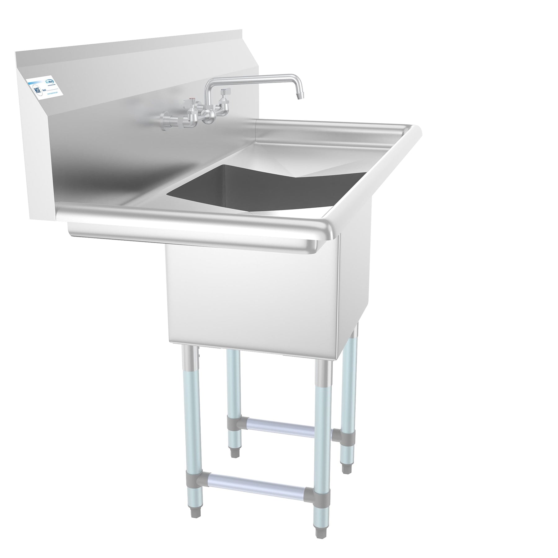 This KoolMore Stainless Steel Utility Tub is the perfect addition for any high-demand environment. Featuring a robust 21-inch by 45-inch design, this freestanding utility tub comes with a deep basin and convenient drainboards, making it ideal for commercial kitchens or home workshops. The durable 304 stainless steel construction ensures long-lasting use and a sleek look that fits any setting.