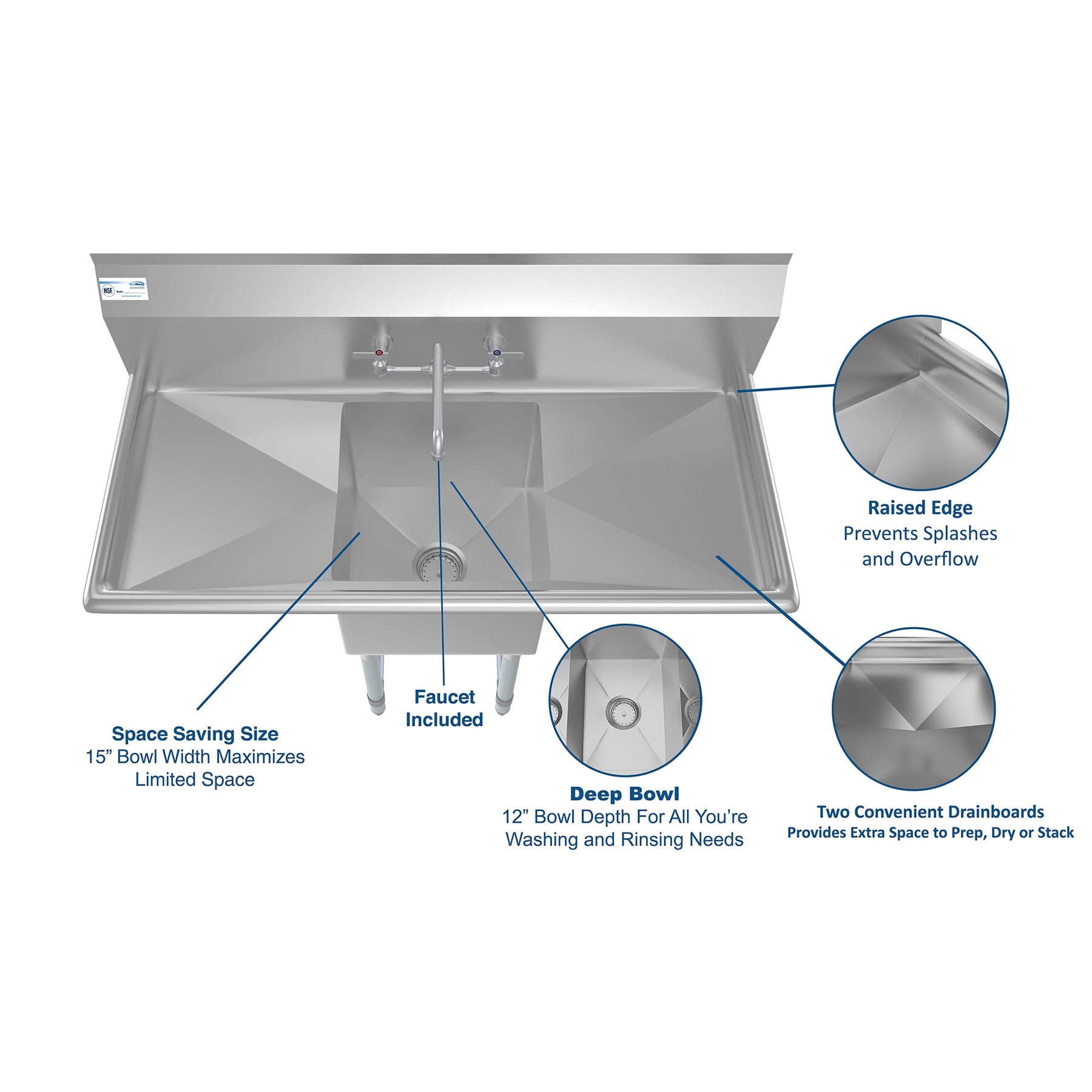 • Convenient Drainboards: Two 15" slanted drainboards allow for effective water draining and additional workspace for meal prep or drying.