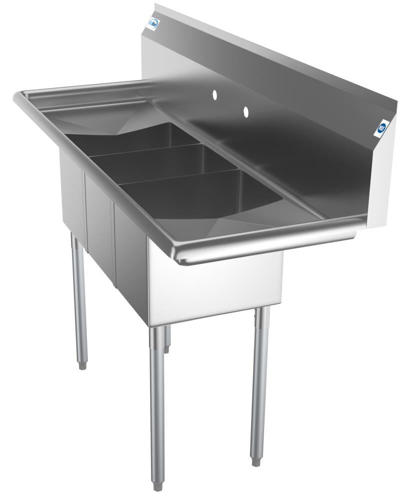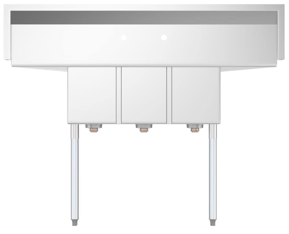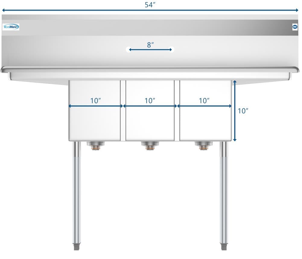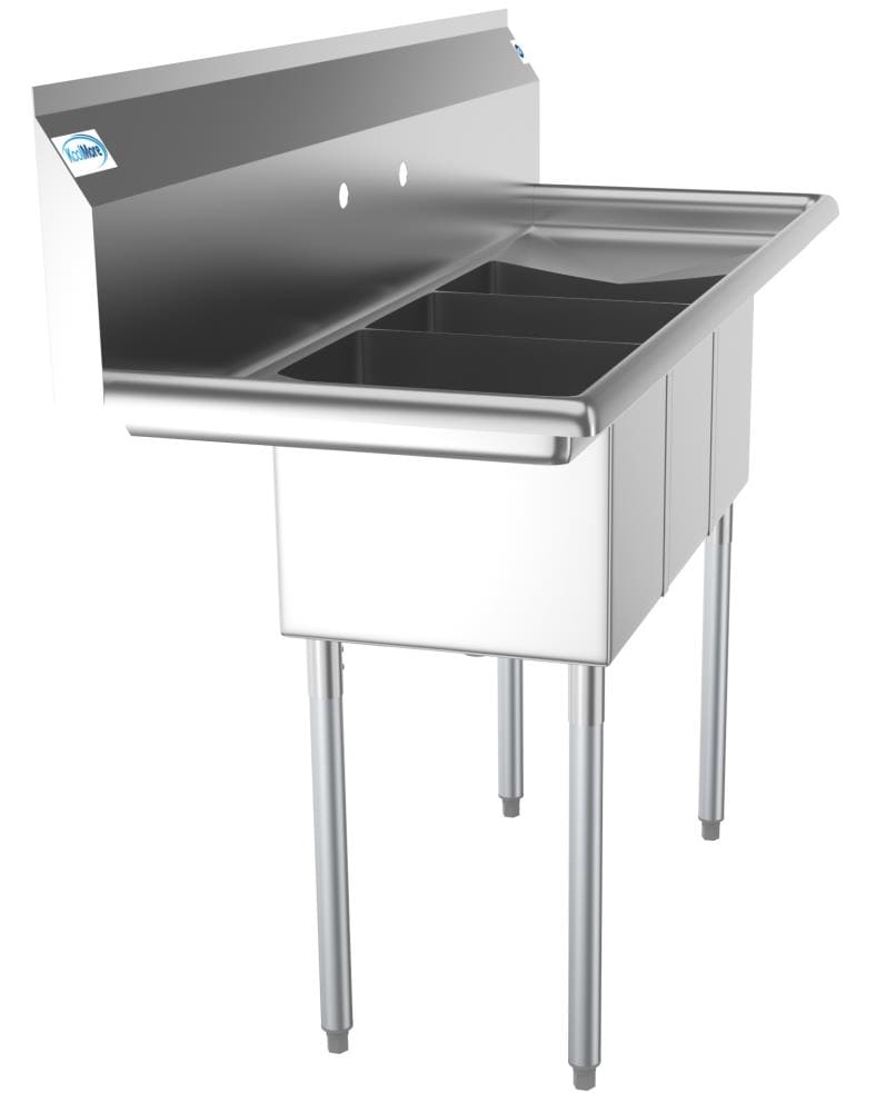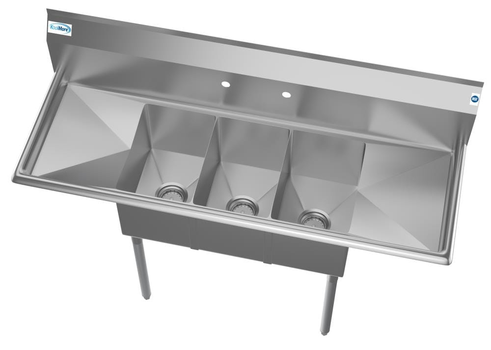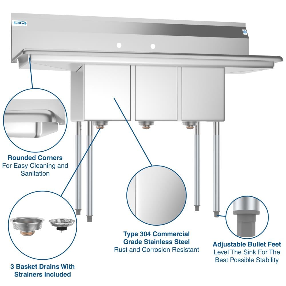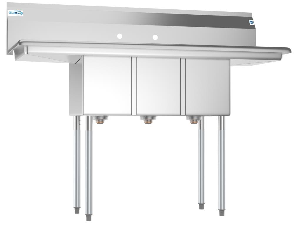 The KoolMore 3-Basin Stainless Steel Freestanding Utility Tub is designed for demanding commercial environments. Featuring heavy-duty 18-gauge 304 stainless steel, it's perfect for efficient wash, rinse, and sanitize operations. With adjustable stability feet and pre-punched holes for convenient faucet installation, this tub promises durability and utility.