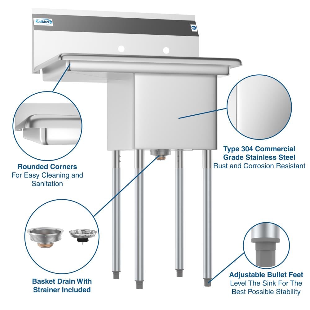 Elevate your workspace with the KoolMore Stainless Steel Utility Tub, designed for practicality and longevity. Crafted from high-grade 18-gauge 304 stainless steel, this freestanding tub is perfect for commercial or residential use. With a convenient left-side drainboard and raised edges, it prevents overflows and ensures easy cleaning, making it ideal for heavy-duty tasks.
