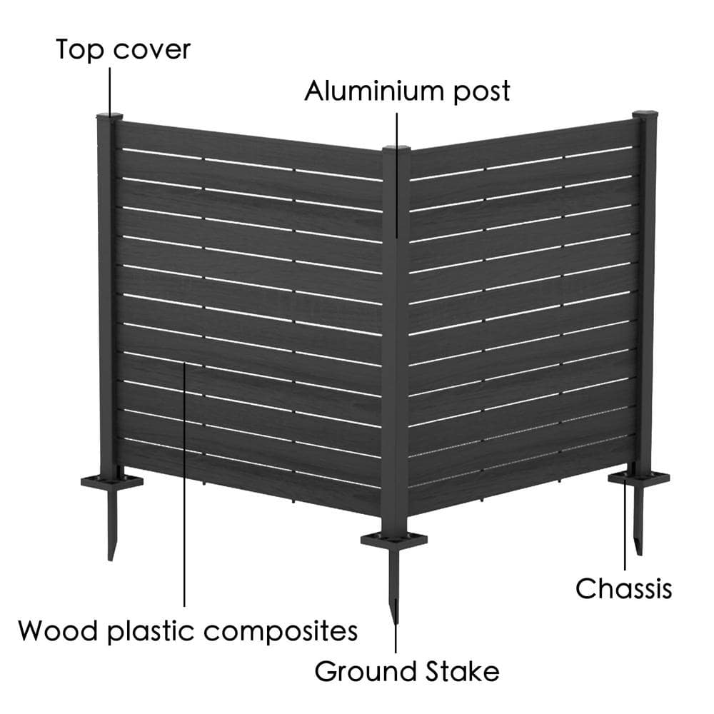 KOZYARD Outdoor Privacy Screen Black Vinyl Fence Panels with Stakes