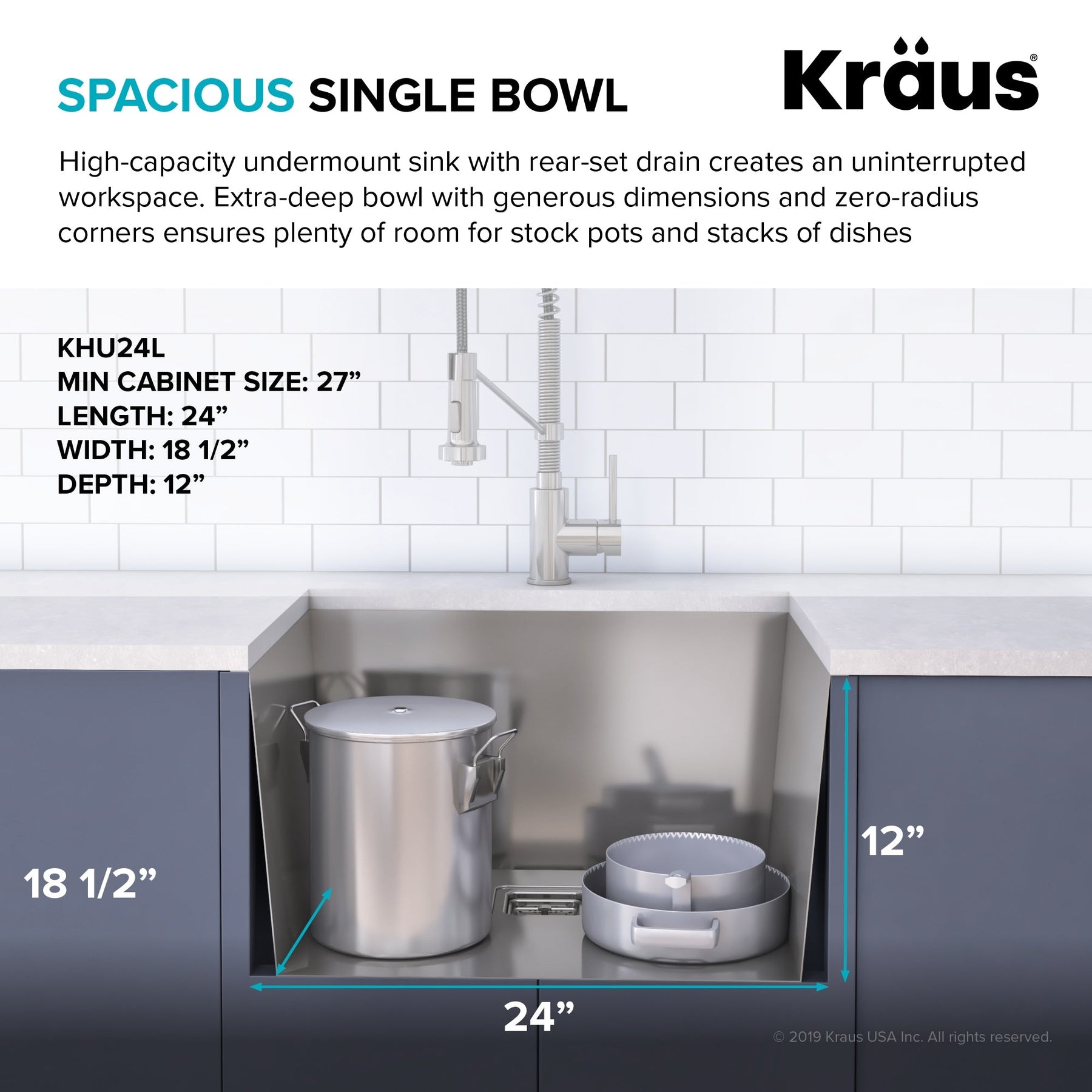 Transform your laundry or utility room with the Kraus Stainless Steel Sink, a marriage of strength and elegance. The sleek undermount design seamlessly blends with contemporary countertops, offering a clutter-free aesthetic. This large-capacity wonder isn't just functional – its satin finish exudes a timeless vibe perfect for spaces that demand both utility and style. Make it a centerpiece by pairing it with bold metallic taps or subtle, understated hues, creating a luxurious haven for home projects.