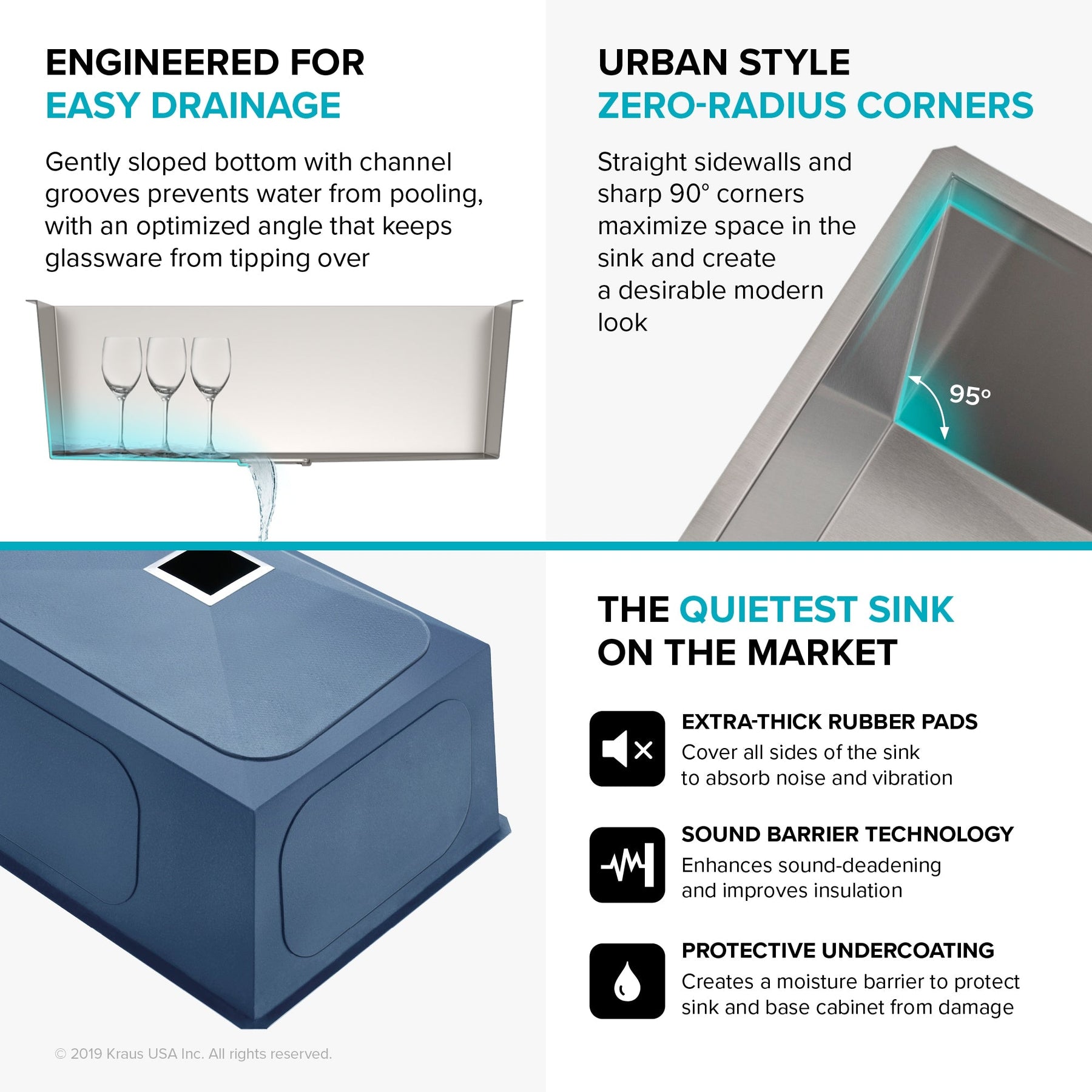 The Kraus Stainless Steel Undermount Laundry Sink combines industrial-grade durability with a modern design to upgrade any utility space. Crafted from heavy-duty T304 stainless steel and featuring NoiseDefend™ soundproofing technology, this sink promises both performance and polish.