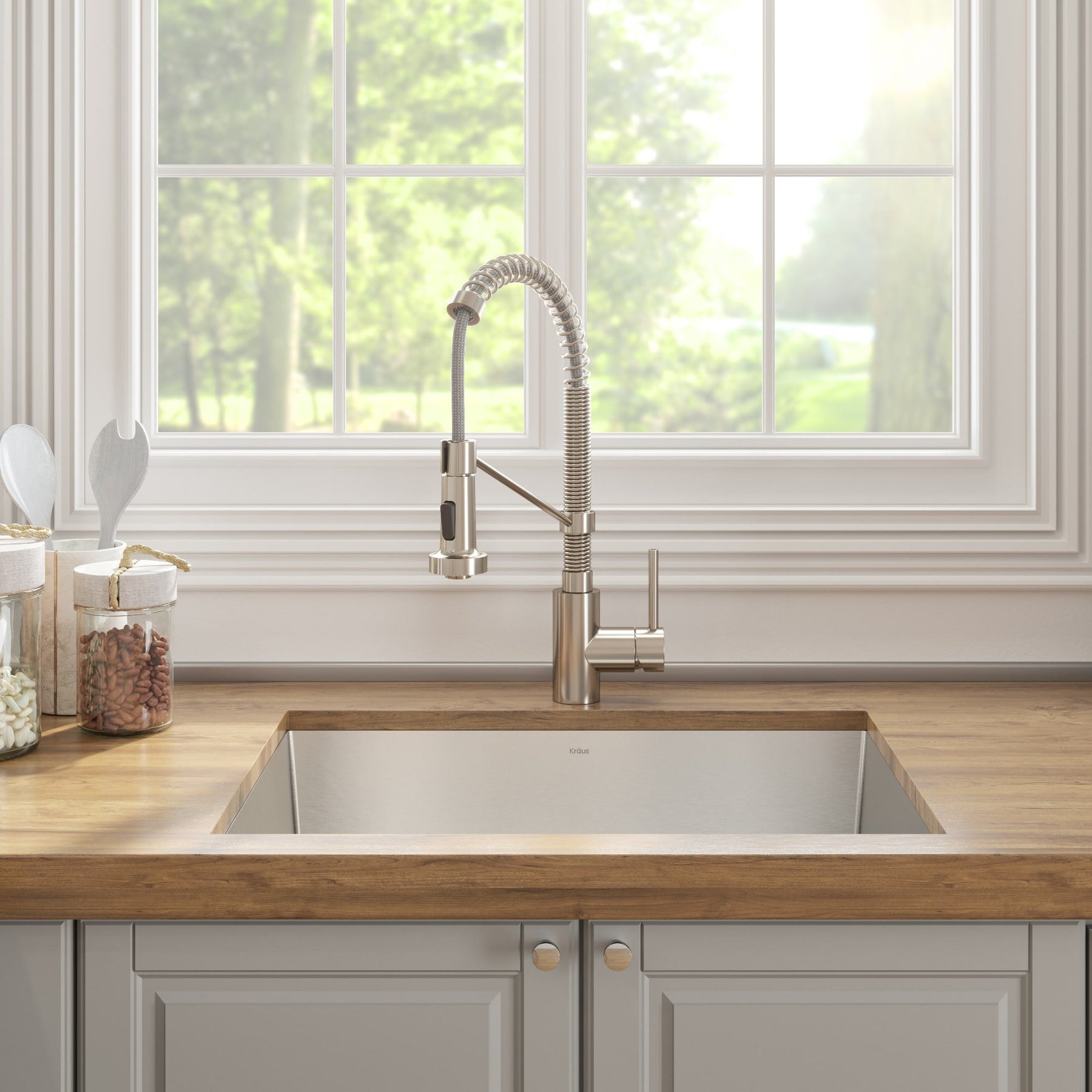 Transform your utility space into a seamless extension of opulent design with the Kraus stainless steel undermount sink. Delight in its stunning satin finish and sharp, zero-radius corners that exude contemporary sophistication. Perfectly paired with a commercial pull-down faucet, it redefines washing experiences—whether in the laundry or garage. This sink isn't merely functional; it's an aesthetic centerpiece that brings modern luxury to everyday chores.