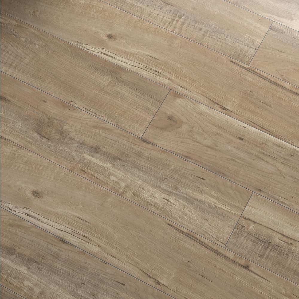 Elevate your spaces with the Krono Original Hampshire Spalted Maple Laminate Flooring. This 12 mm thick plank features a rare spalted maple design with a muted sandy tone, combining style and durability with waterproof protection. It's perfect for high-traffic areas and homes with kids and pets, offering easy maintenance and installation.