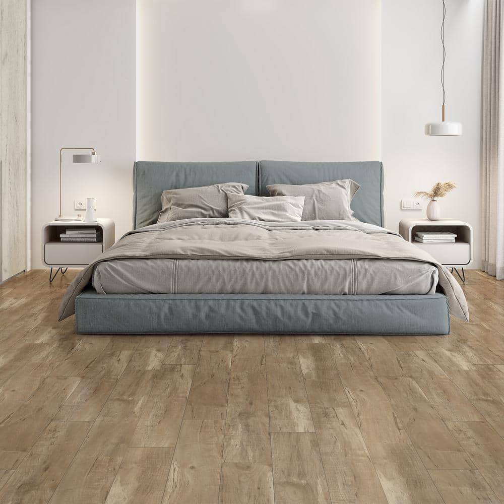The Krono Original Hampshire Spalted Maple laminate flooring offers a transformative touch to any room. With its exquisite, muted sandy hues and distinct spalting, it captures the elegance of natural wood with enhanced durability. Pair it with minimalist furniture to let its unique design shine, or complement with bold patterns for a truly dynamic space. This flooring is not just a backdrop but a statement of refined taste, making it an essential choice for elevating your home to new heights of luxury.