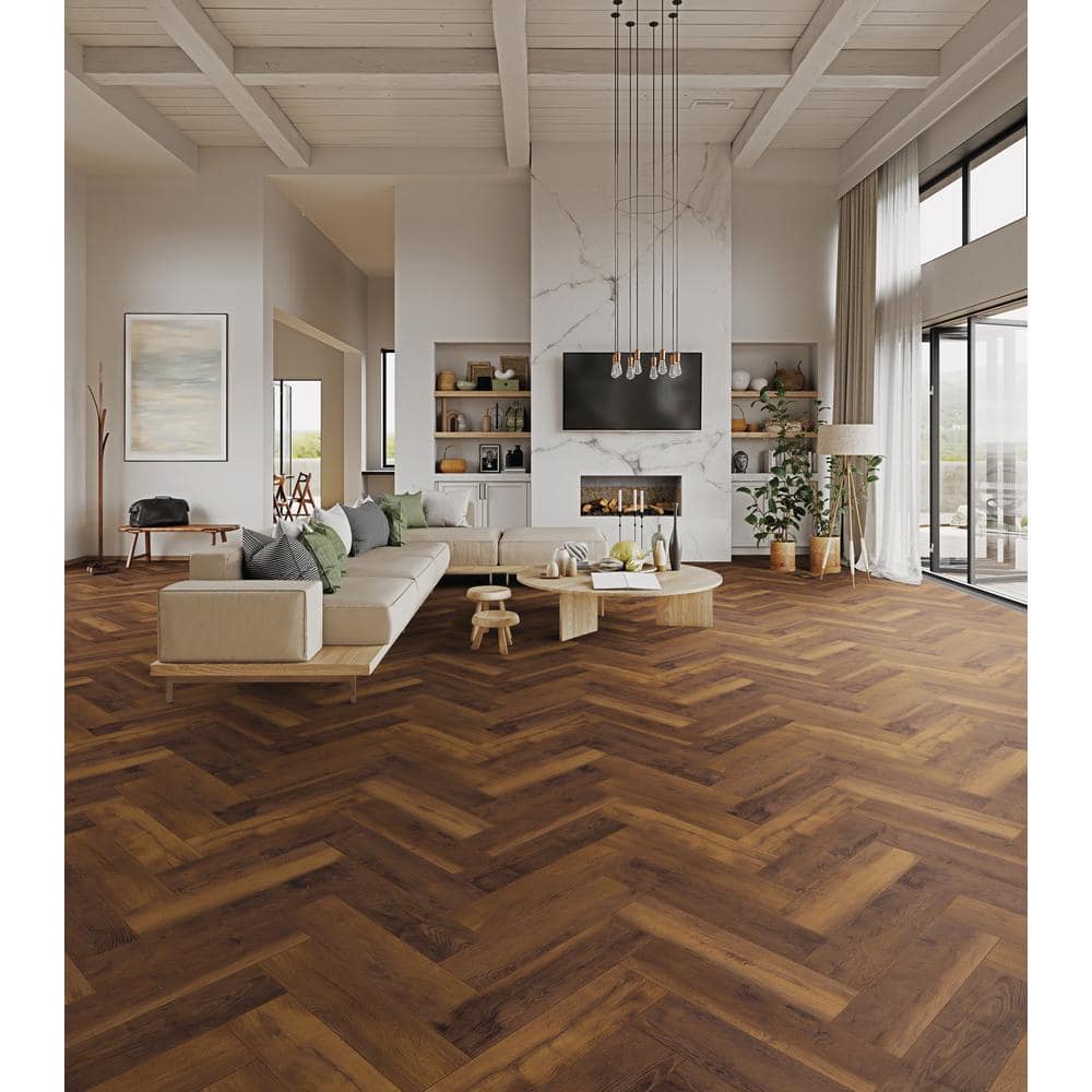 The Laguna Oak Herringbone Laminate Flooring captures the heart of sumptuous living with its sophisticated herringbone design. This flooring doesn’t just transform a room; it elevates it, exuding warmth and a touch of luxury with its deep oak tones. Use it to create a stunning visual anchor in any living area, paired with soft neutrals to enhance its rich texture. Essential for any contemporary abode, this flooring merges timeless beauty with modern practicality.