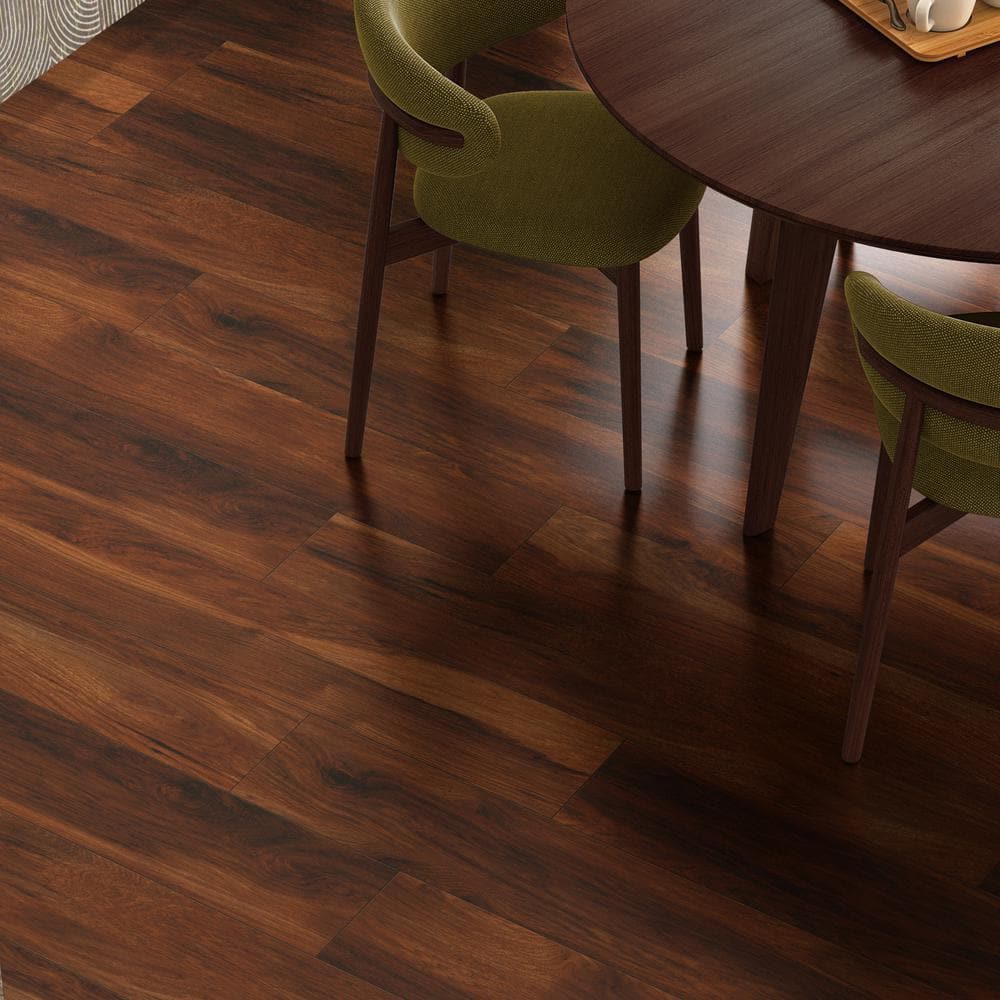 Step into luxury with Krono Original's exquisite River Penfold Hickory flooring that transforms any room into an oasis of warmth and elegance. The deep brown tones with shimmering golden undertones create a sophisticated, organic palette that harmonizes with both traditional and modern interiors. Pair this flooring with plush area rugs for a cozy contrast or let its natural beauty shine through in a minimalist space. A hallmark of timeless design, this flooring doesn't just complete a room—it sets the stage for life’s finest moments.