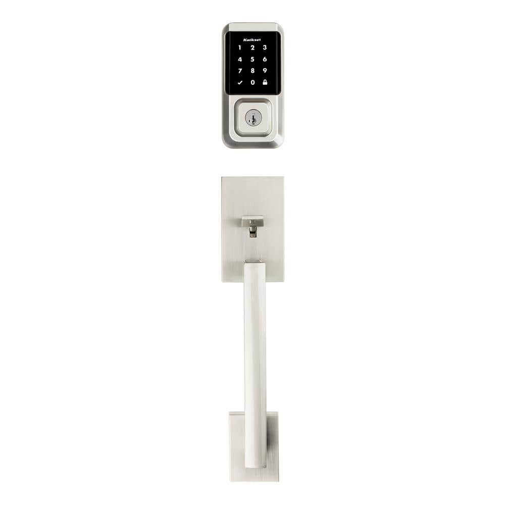 Kwikset Halo Satin Nickel Electronic Smart Lock Deadbolt Feat SmartKey Security Touchscreen and WiFi and San Clemente Handleset