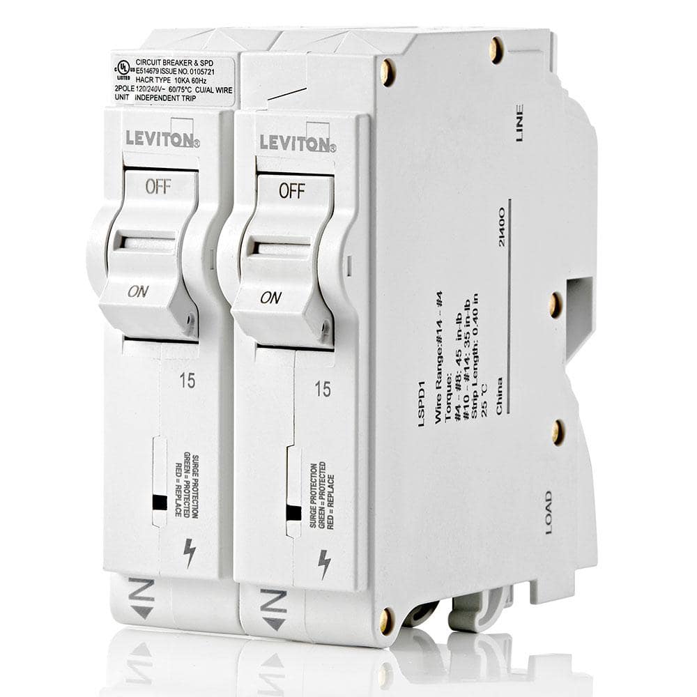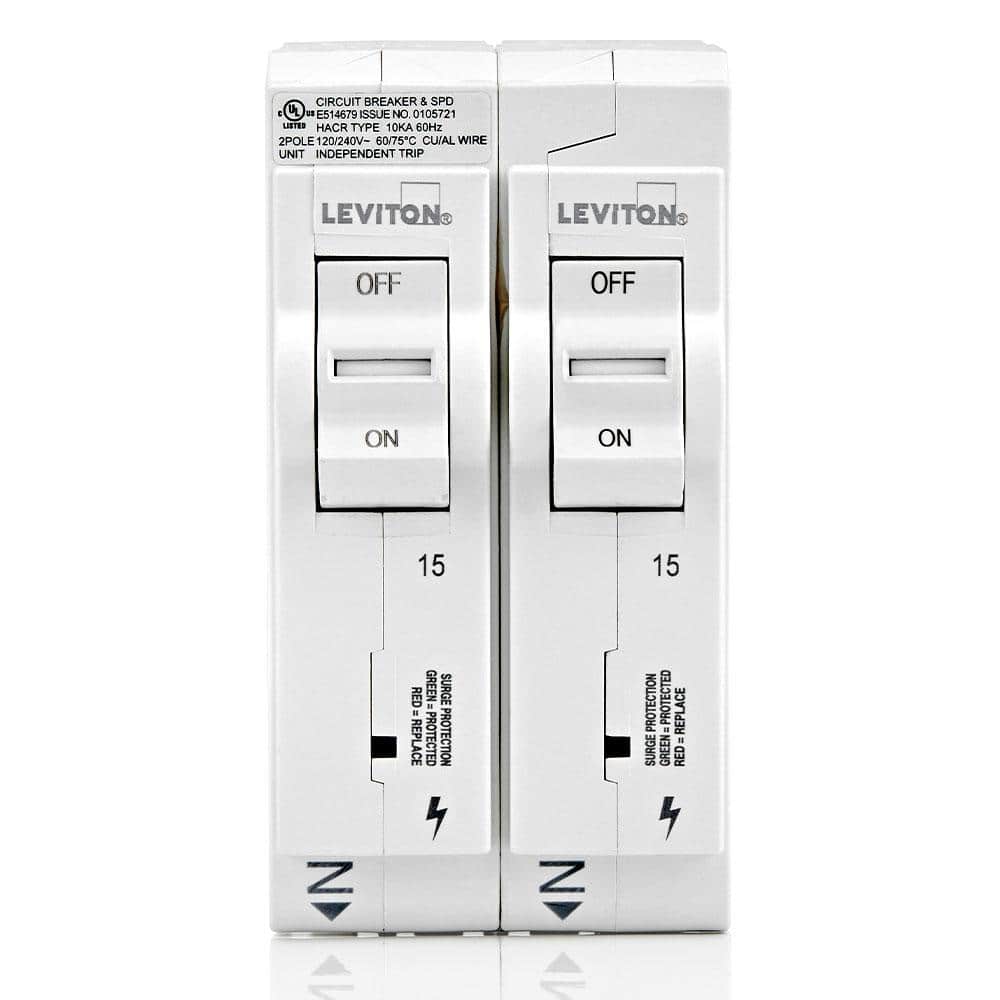 Leviton 15 Amp Surge Protective Device with Two 1-Pole Standard Hydraulic Magnetic Branch Circuit Breakers