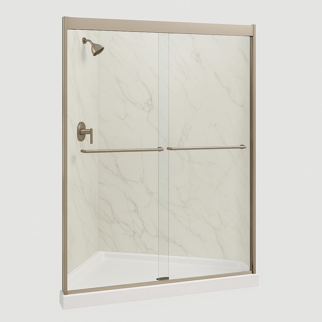 The Levity Semi-Frameless Sliding Shower Door is a masterpiece of contemporary design, blending functionality with style. Its nickel finish and clear tempered glass create a bright and open feel, perfect for modern bathrooms. The integrated towel bars add practicality without compromising aesthetics. Pair it with marble tiles for a luxurious spa-like retreat. This door is not just a fixture; it's a statement of refined taste.
