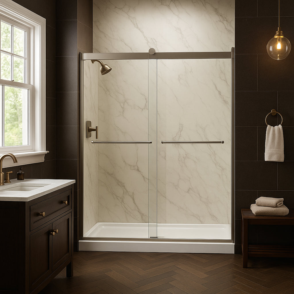 Upgrade your bathroom with the Levity Semi-Frameless Sliding Shower Door for a sleek and functional design.