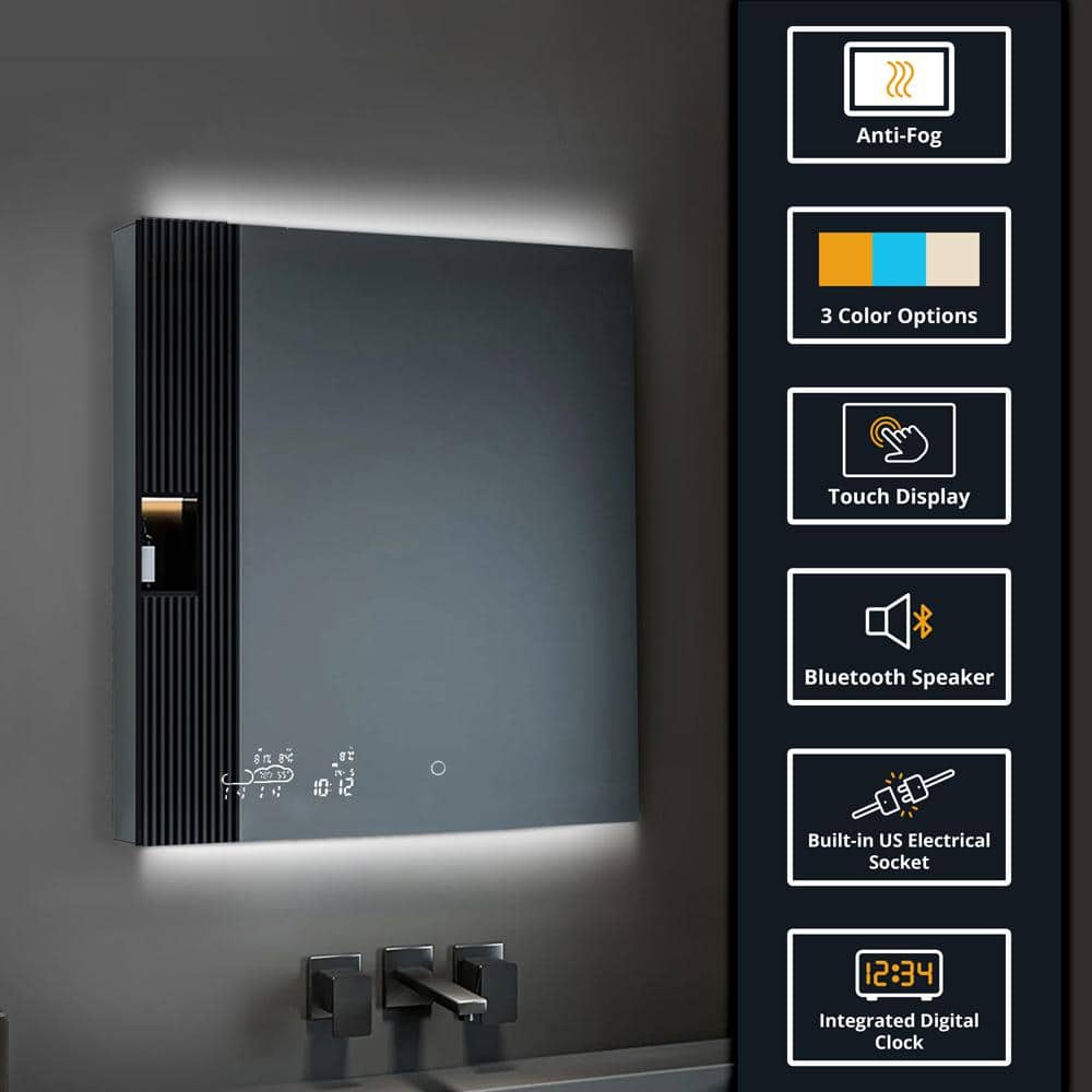Elevate your bathroom experience with the Lexora Savera LED Mirror Medicine Cabinet. Designed with both practicality and elegance in mind, this cabinet features a built-in defogger, LED lighting, and Bluetooth connectivity. Its sleek black aluminum frame and multifunctionality make it a standout piece for both residential and commercial spaces.