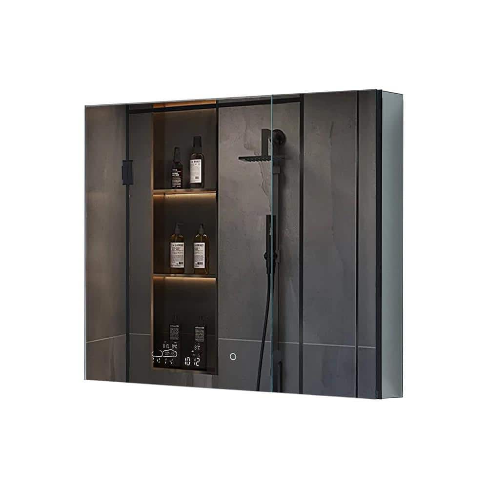 Lexora Savera 36 in. W x 32 in. H Recessed or Surface-Mount LED Mirror Medicine Cabinet with Defogger
