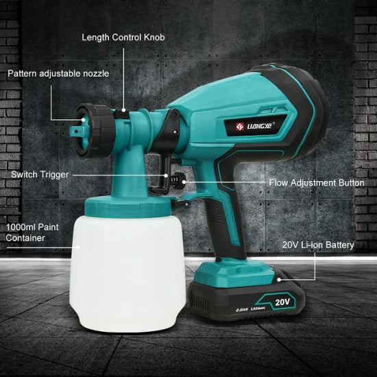 Elevate your painting projects with the Liangye 18V Cordless HVLP Spray Gun. This powerful, battery-operated tool offers airless spraying with adjustable flow for versatile application. Ideal for furniture, walls, and DIY projects, it includes multiple nozzles to tackle any task.