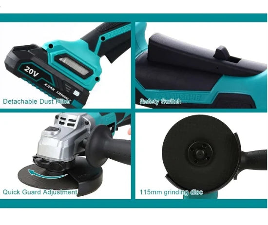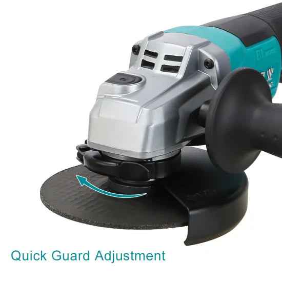 • Brushless Motor: Offers unmatched power efficiency and reduced maintenance needs, equivalent to a 1000W AC grinder.