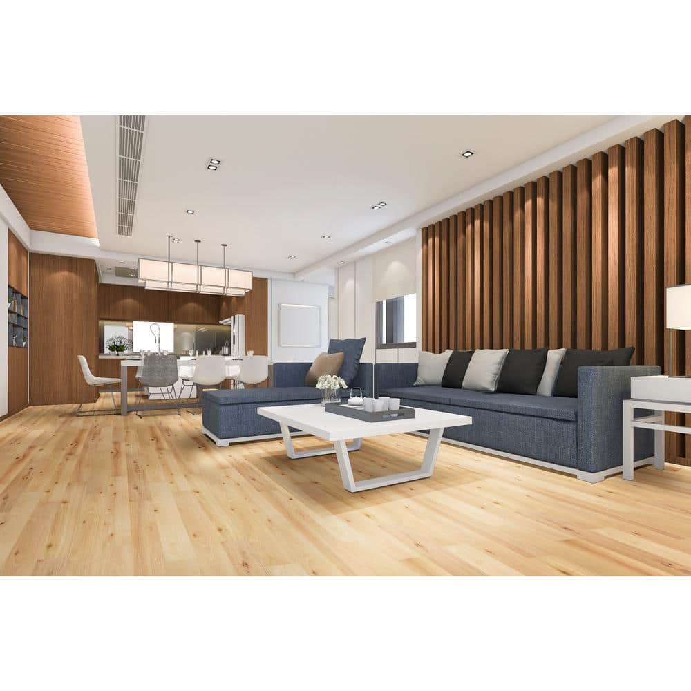 Transform your home with the Lifeproof Teton Hickory Engineered Hardwood Flooring. Featuring a warm, brown tone and the durability of hickory with a Janka hardness rating of 1820, this flooring provides elegance and enduring quality. Its scratch-resistant, waterproof design is ideal for high-traffic areas, while the user-friendly Click Lock installation makes it perfect for both pros and DIYers.