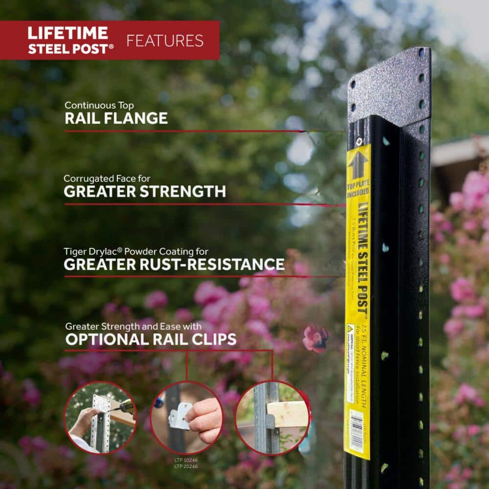Enhance your fencing project with the strength and style of LIFETIME's steel post—grab yours today and build with confidence.