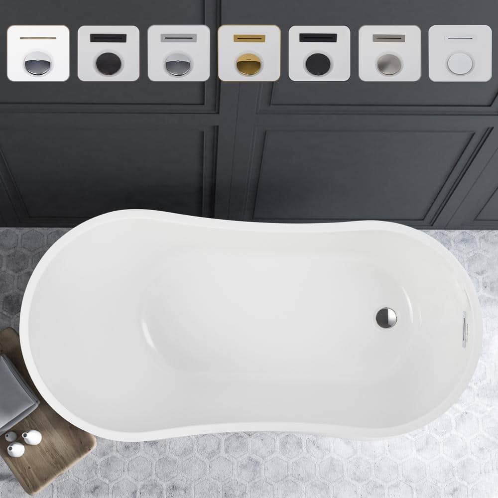 Experience the transformation of your bathroom into an oasis of elegance with the Limoges 55" Freestanding Acrylic Bathtub. Its sleek, oval shape and pristine white finish create a stunning visual statement that evokes serenity. This piece highlights the perfect blend of modern style and classic grace, with its gentle slopes hugging you into relaxation. Place your Limoges bathtub under a window for a touch of nature-inspired luxury, turning your ordinary bathing routine into an extraordinary ritual, essential for a tranquil living experience.