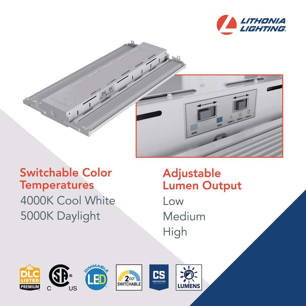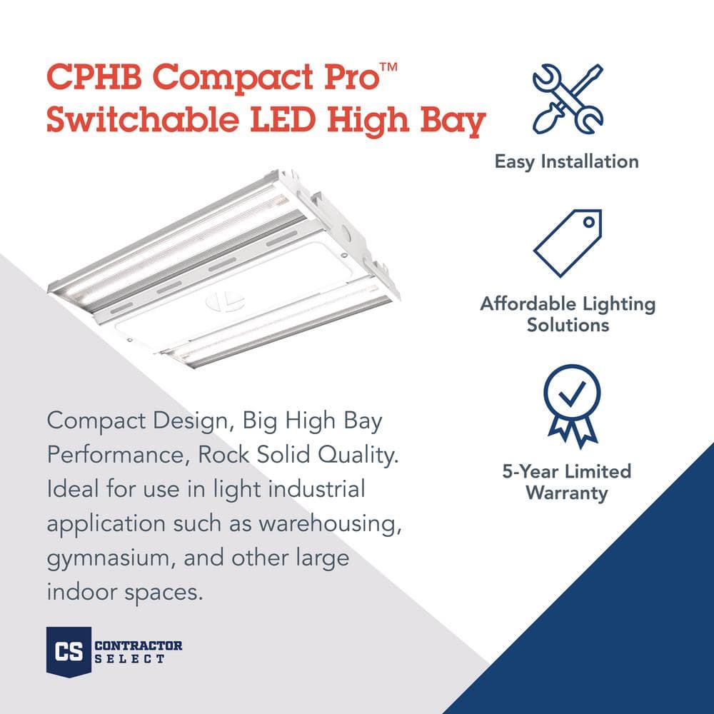 Illuminate large spaces efficiently with Lithonia Lighting's Contractor Select Compact Pro High Bay LED Light. This sleek, easy-to-install fixture offers adjustable lumen output and color temperatures, making it an ideal solution for warehouses and garages. Built with durability in mind, it ensures long-lasting performance in demanding environments.