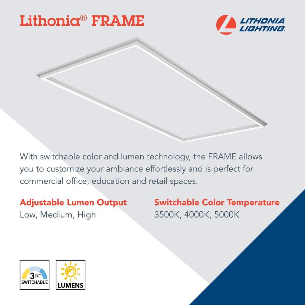 Illuminate your space with the Lithonia Lighting Contractor Select LFRM LED Troffer Light, a modern 2 ft. x 4 ft. fixture boasting switchable color temperatures and lumen flexibility. Designed for efficiency and energy saving, this integrated LED light transforms traditional panel lighting into a sleek, lightweight, and cost-effective solution. Ideal for commercial spaces, it's a premium choice for bright, consistent illumination.