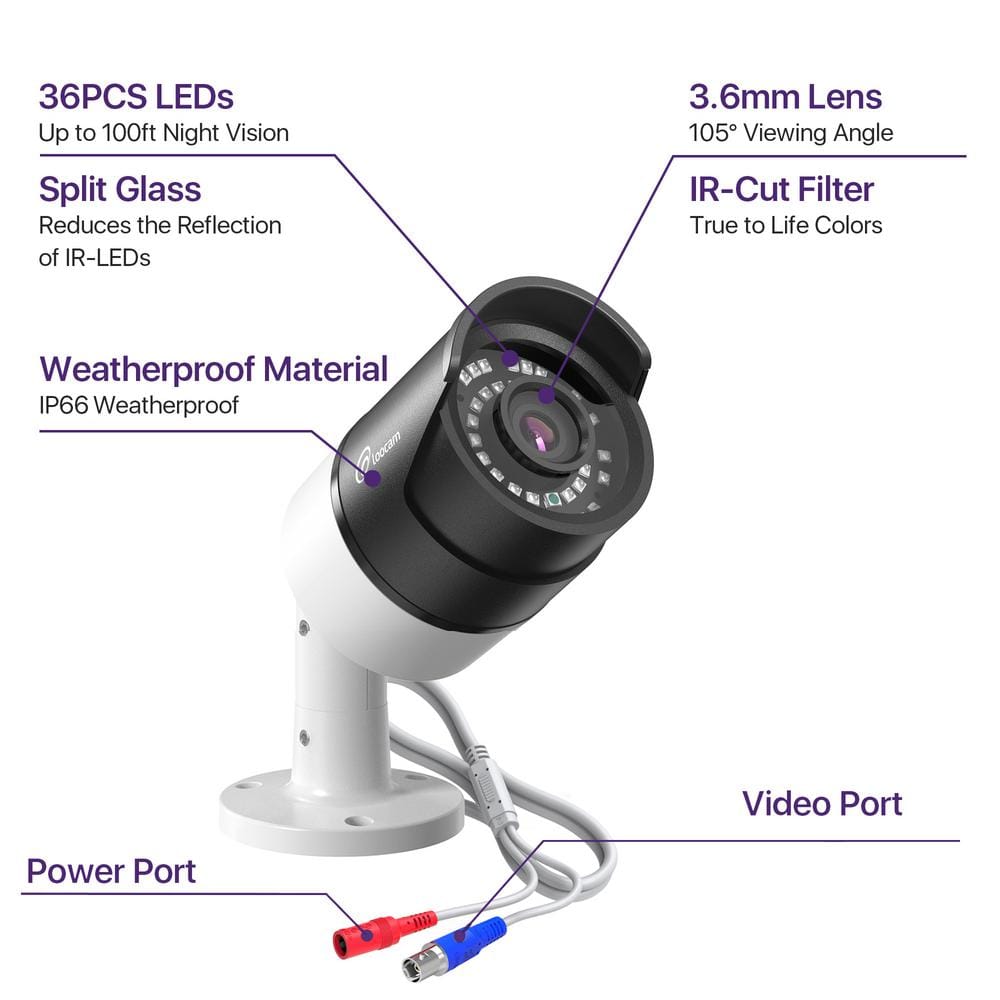Night Vision Technology: 100 ft. range with 36 IR LEDs for clear visuals even in low light.